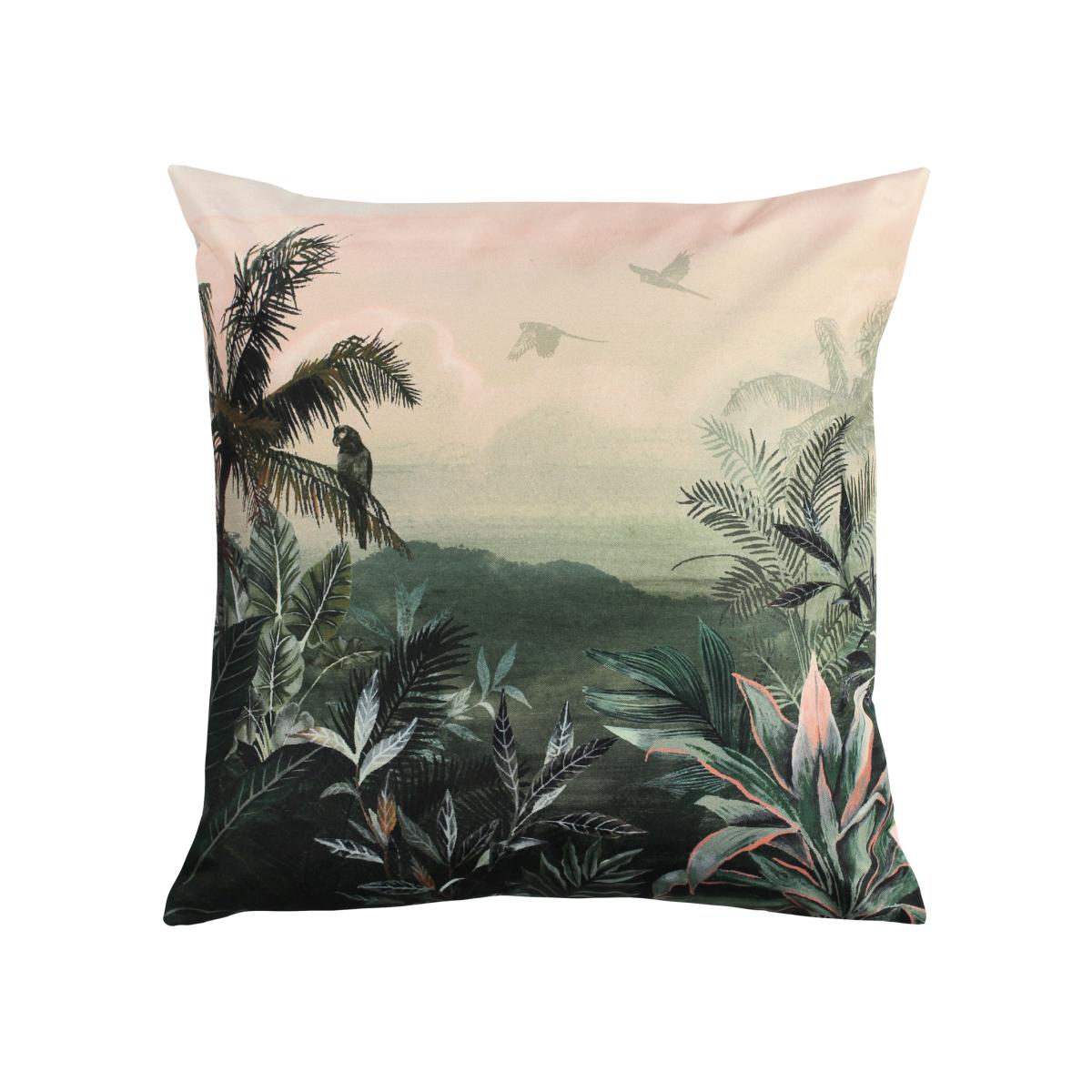 Featuring a jungle inspired scenic landscape in a beautiful pink blush and forest green colour palette. Add some of the jungle to your outdoor space with this colourful, reversible outdoor cushions. This dramatic design will be sure to make a statement in any contemporary garden.
