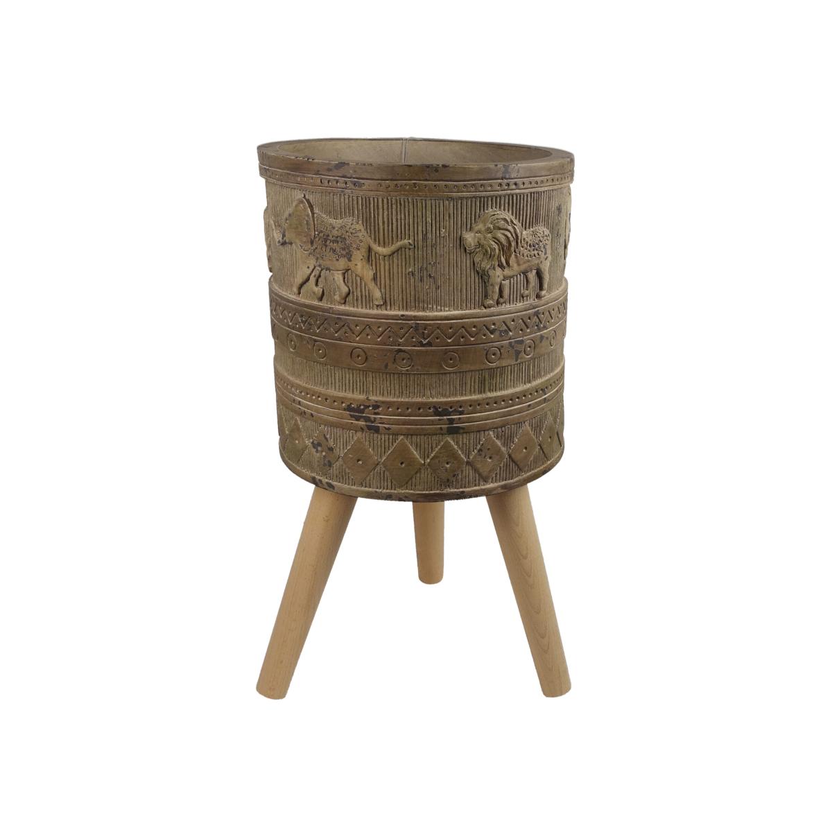 Large fibreglass composite planters, hand finished in a rustic style. Large planter ideal for either artificial plants or real ones. Designed for indoor use but can be used outdoors in a sheltered position, we recommend protecting from extremes of weather. No drainage holes so suitable for watering indoor plants. Intentional Rustic finish. Comes requiring minor assembly by screwing on legs - the legs are double threaded so by twisting the bolt the opposite direction you can extend or reduce the length of the screw part that fits into the planter. Material fibreglass composite. Legs Wood