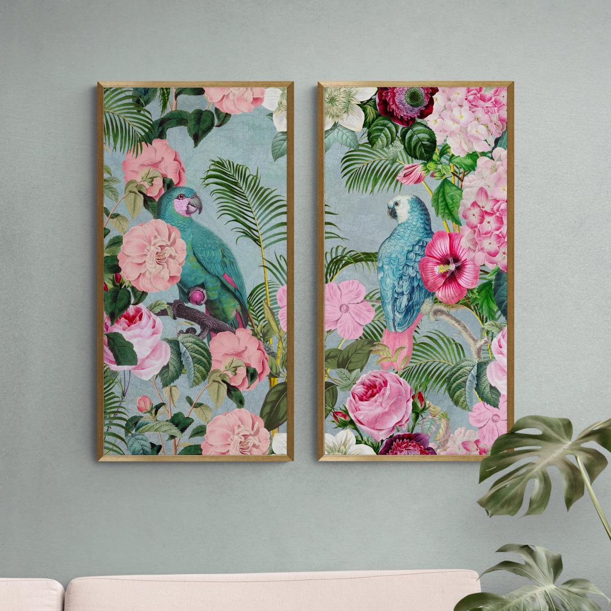 I love the Jungle Rendezvous prints for their vibrant, tropical vibe that can instantly bring a lively, exotic touch to various interiors. They work particularly well in contemporary, boho, or eclectic spaces, where bold colours and nature-inspired elements are welcomed. To style these prints effectively, consider pairing them with neutral or muted backgrounds to let their colours pop, or incorporate complementary accents like lush greenery or soft pink tones to create cohesion. Practical tips include hanging them at eye level in living rooms or hallways, or grouping them with other tropical-themed accessories for a curated, lively feel. These prints are versatile enough to add character to both modern and more relaxed, informal interiors.