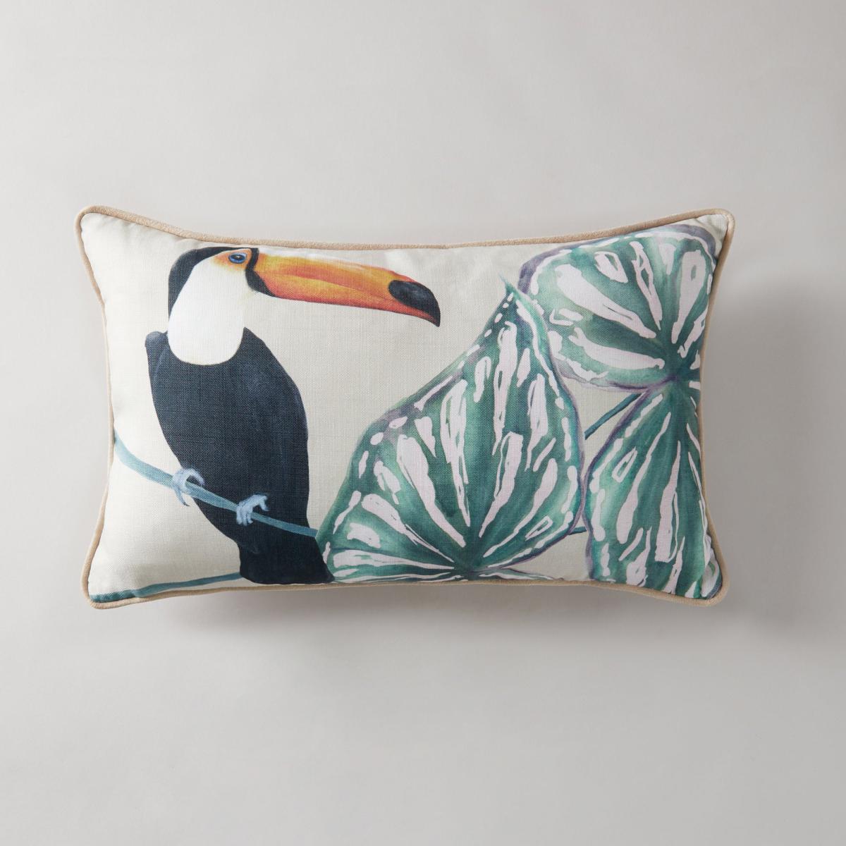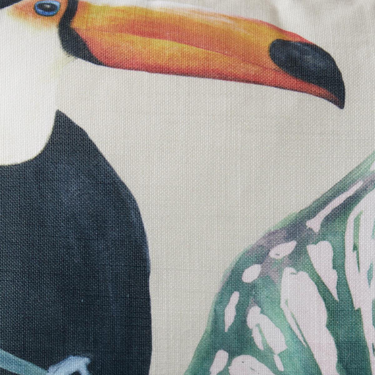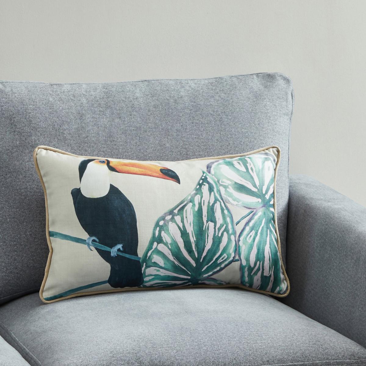 Featuring a quirky toucan jungle print this rectangular cushion is not only stylish but comfortable thanks to its luxurious fibre filling. With a natural faux suede backing this cushion would look good in any room of your house and its zip fastened removable cover means this cushion is easy to clean.