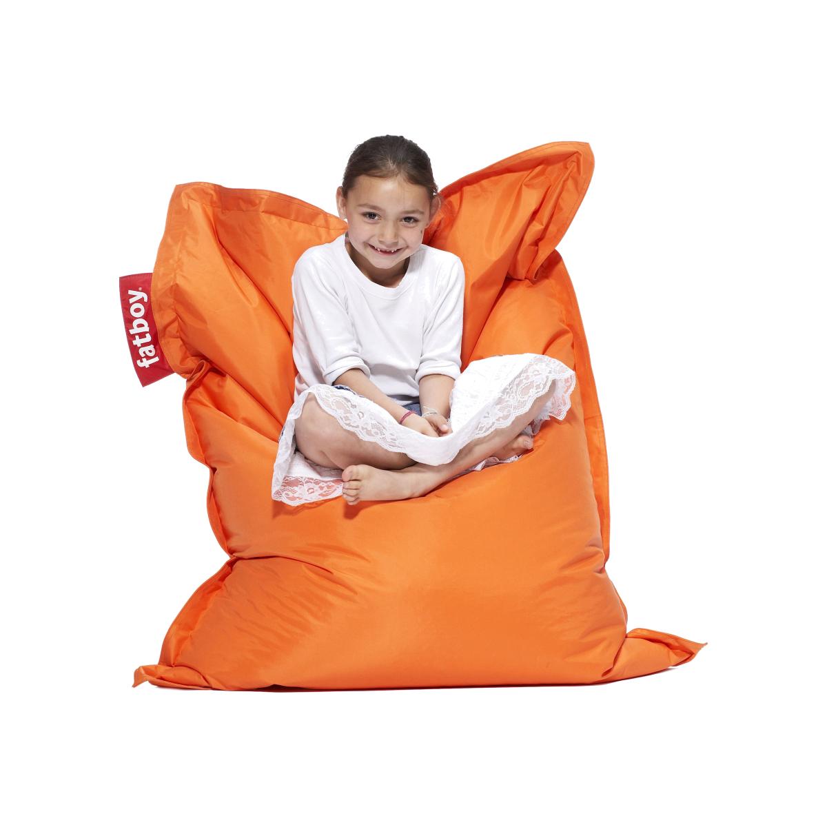 "Discover Junior, the junior version of the Fatboy Original beanbag"". Especially designed for children, Junior has a multitude of uses: a lounge bag for children bedroom, a relaxing option for the living room, a comforting-pillow. The Fatboy Junior is made of a practical and easy to clean nylon material with a special coating, a rub with a damp cloth is sufficient to keep it looking new. The Fatboy nylon is also water-resistant, ventilated and non-fire coated. Outdoor and indoor use. Fatboy Junior is available in various colours: lime green, black, orange, red, pink and turquoise. """.