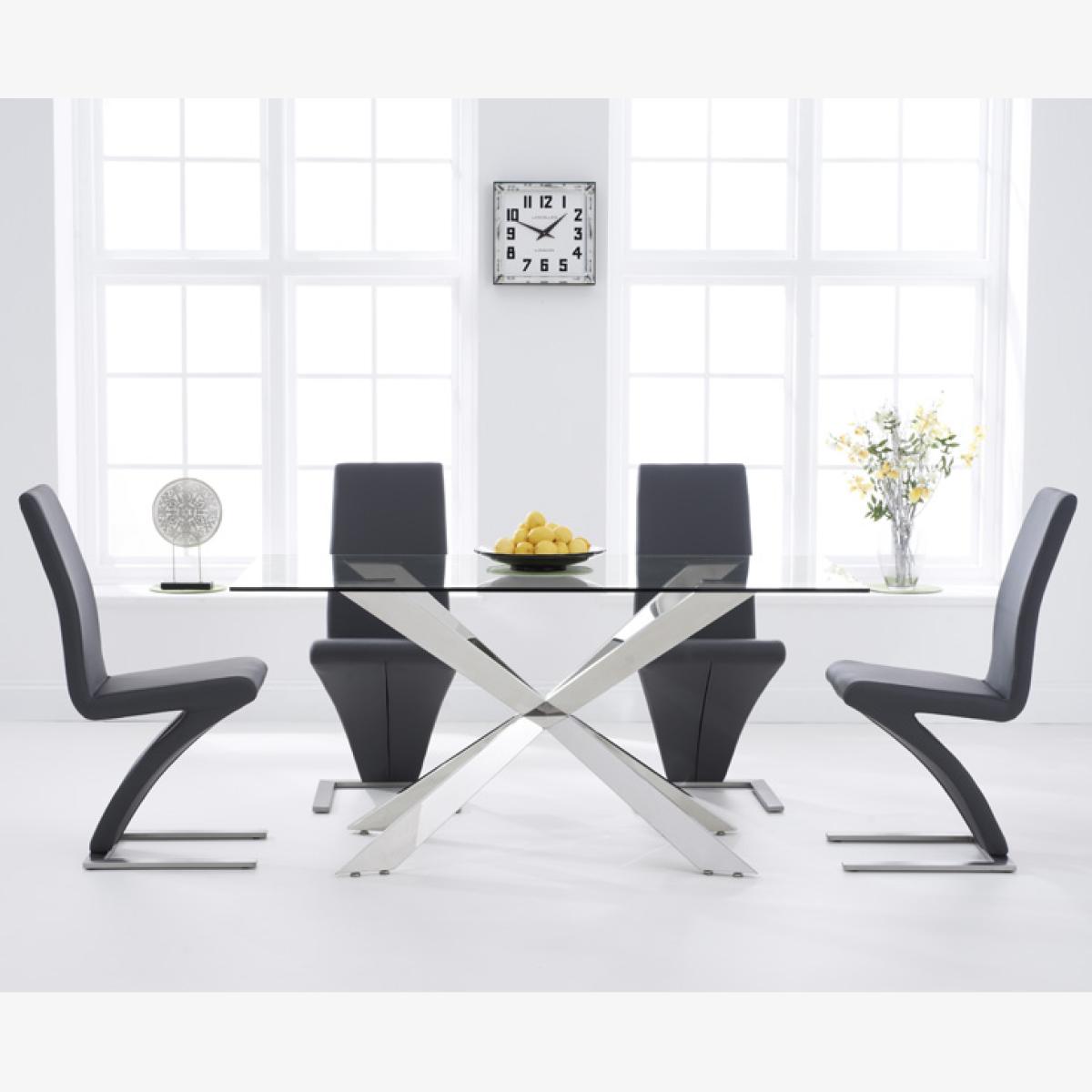 Juniper 160cm Glass Dining Table With 8 White Aldo Chairs