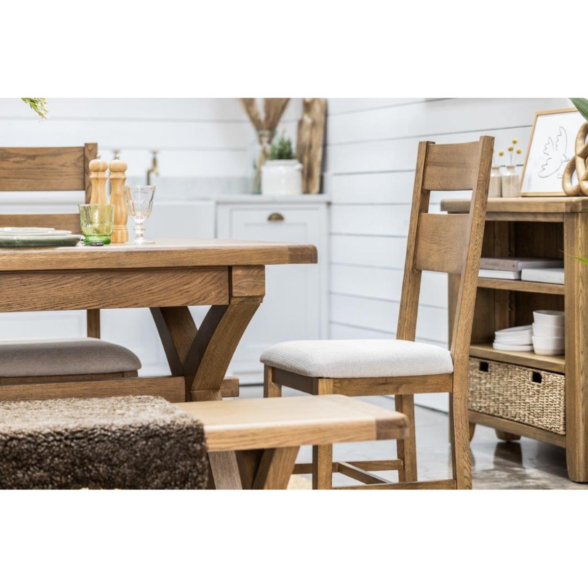 Stylish and Space-Saving Seating - Practical and inviting, the Juniper Dining Bench is a perfect addition to your dining space. With its striking X-leg design and smoked oak finish, it complements the Juniper Dining Table beautifully while offering a relaxed, modern farmhouse feel. Key Features: Ideal seating solution for family dining or entertaining guests X-leg design perfectly matches the Juniper Dining Table Crafted from oak and oak veneers for strength and timeless appeal Coordinates with the Juniper dining collection, including tables, chairs, and storage pieces Delivered flat packed for easy home assembly Dimensions: Height: 46cm Width: 200cm Depth: 40cm All screens vary in colour reproduction and whilst every effort has been made to display the colour as accurately as possible it is for guidance only.