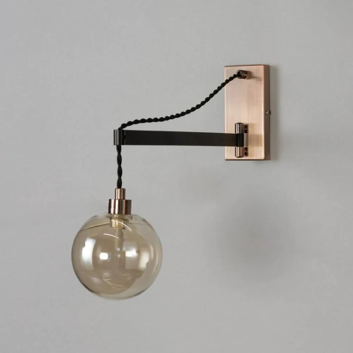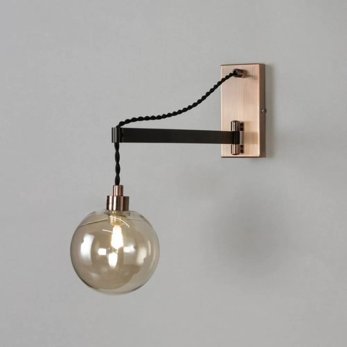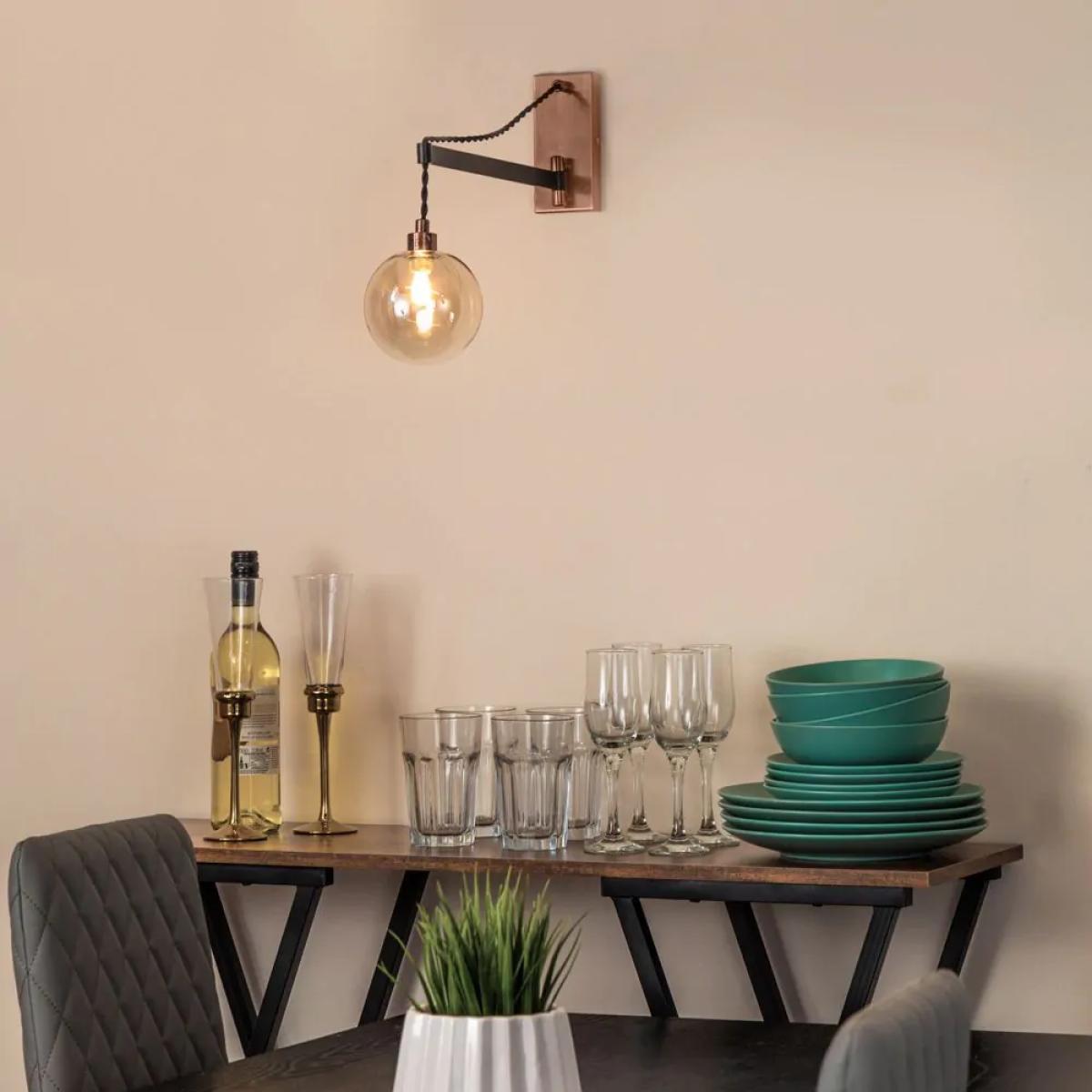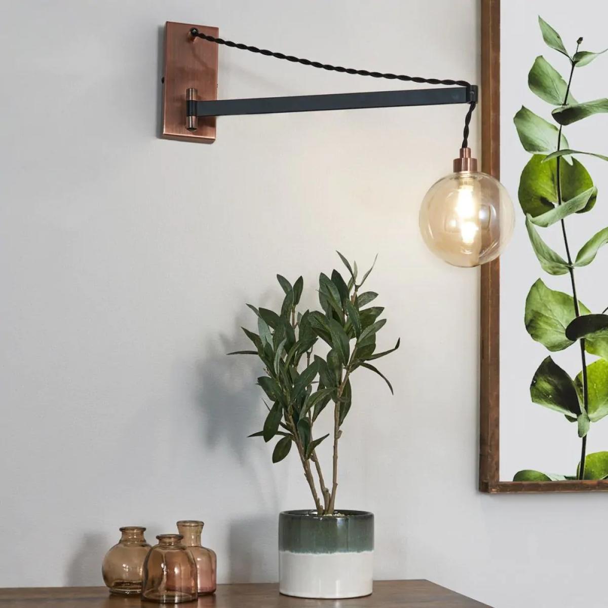 Bring a stunning industrial look to your home with the Juniper Copper and Black Wall Light. The unusual design of this wall light makes it stand out. With the brackets sitting flush on your wall and the arm reaching out with the light attached to the end of the arm makes this wall light perfect for use as a reading light as well as allowing it to radiate light around your whole room.