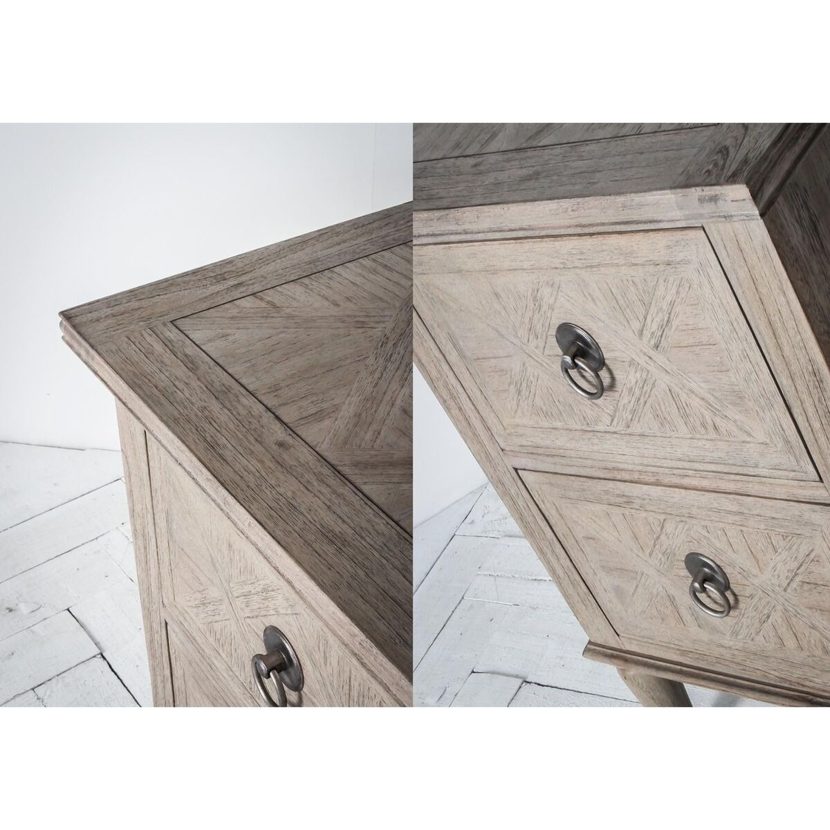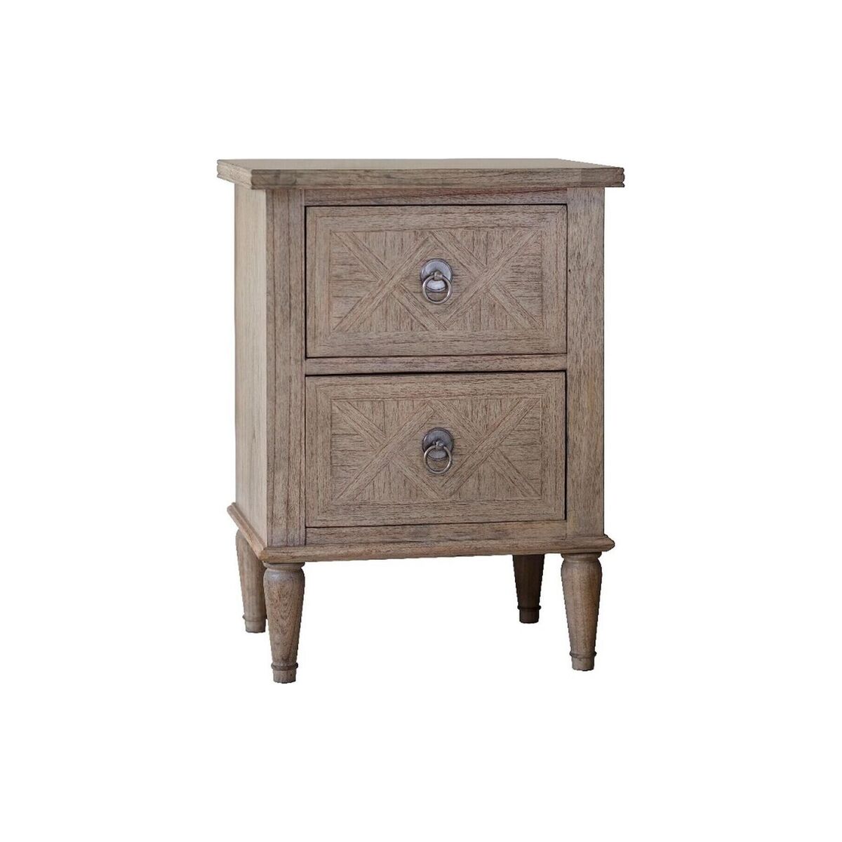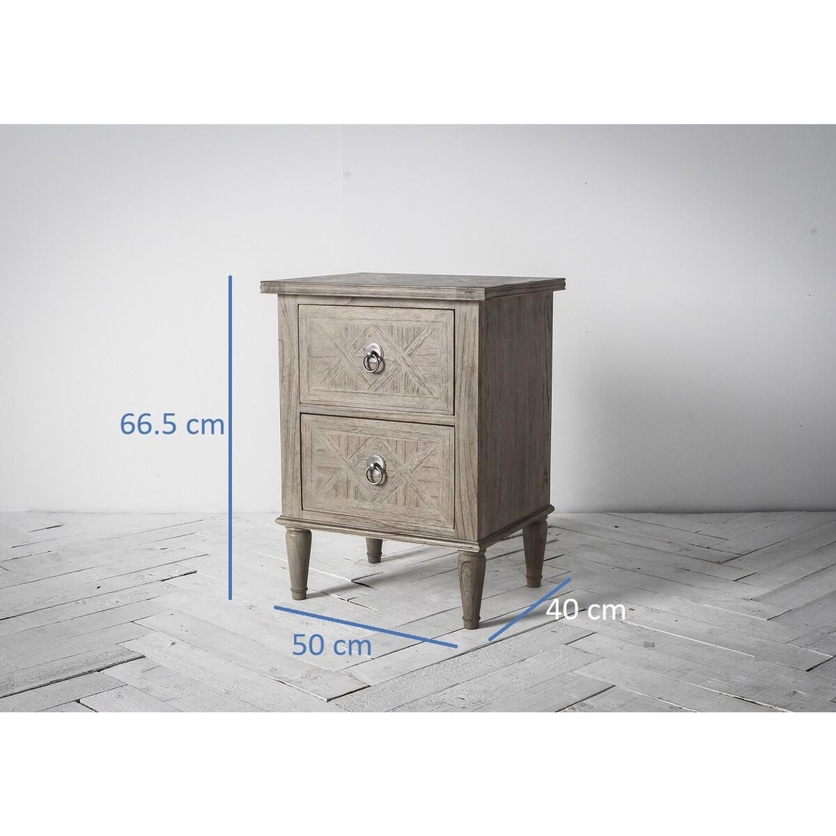 Wake up to a fresh breeze of style with the beautiful Juno bedside cabinet. Crafted from strong Mindy wood, this compact design will bring an organic feel to your bedroom while providing ample storage space for your essentials. It is packed with two drawers with metal handles and beautiful marquetry detailing on their fronts for a splash of texture. The Juno is ideal for those looking to revamp their bedroom — simply combine it with the matching bedroom pieces to create a suite that is a grand style statement in its very own right.