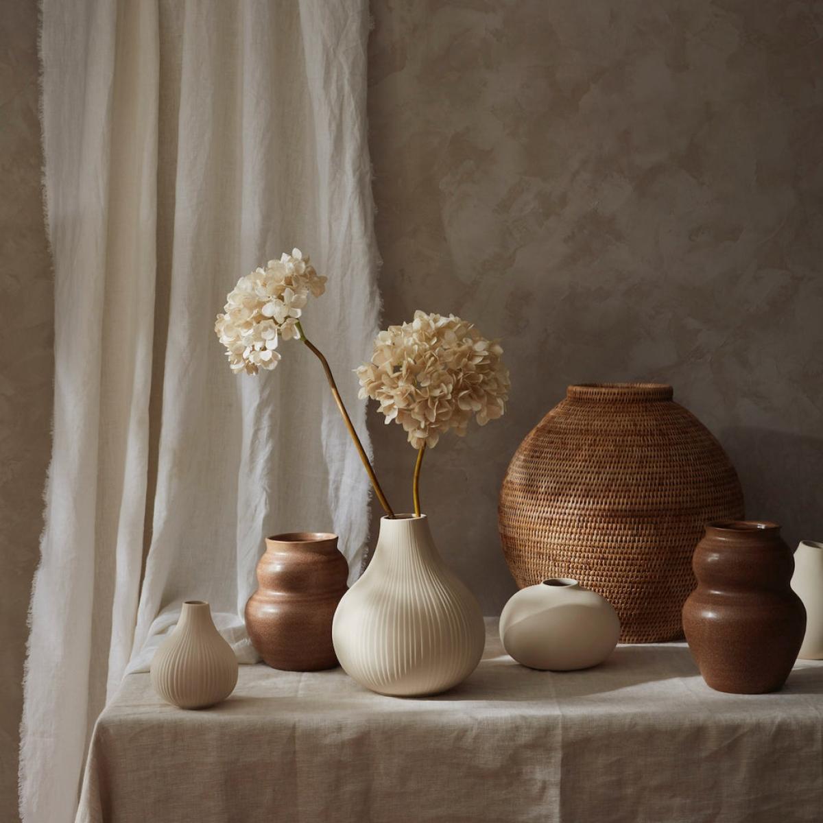 With an organic shape there is no denying the Juno range of vases is a beautiful collection. Handmade of clay, each piece will be slightly unique which only adds to the charm. In a rich camel tone these vases are ideal for Autumn or Winter styling and combine beautifully with the white should you wish to create a display!