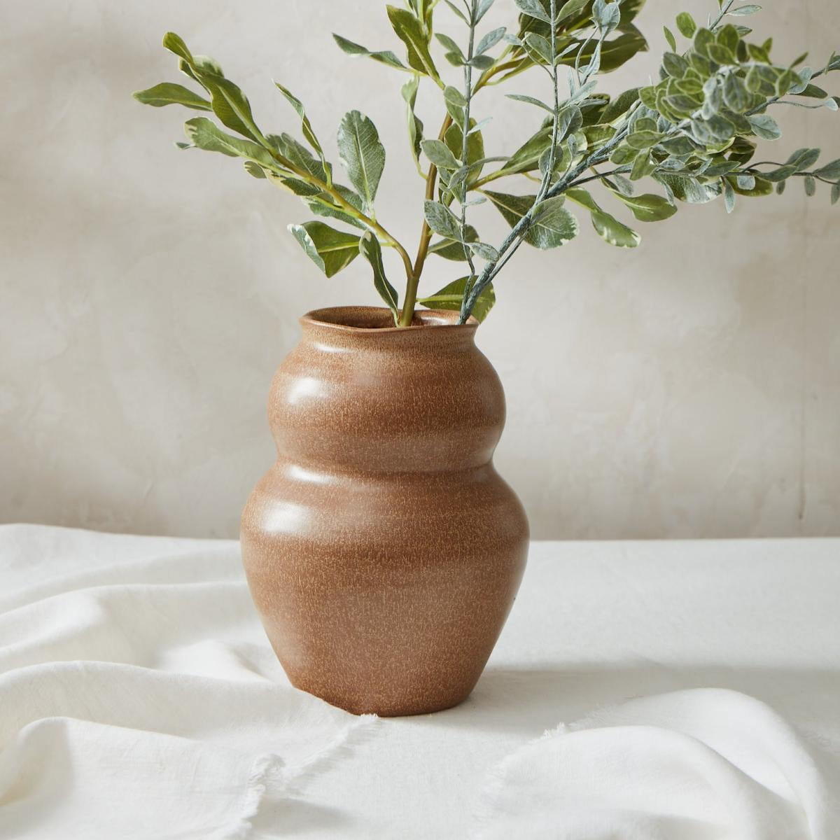 I love the Juno Camel Vase for its understated yet distinctive shape, which adds tactile interest to a space without overpowering it. Its warm, earthy tone makes it versatile enough to suit both contemporary and rustic interiors, especially in neutral or natural colour schemes. For styling tips, consider pairing it with simple greenery like eucalyptus or dried grasses for a relaxed feel, or use it as a standalone statement piece on a sideboard or coffee table. Its size and shape lend themselves well to casual displays, and it can effortlessly elevate both minimalistic and eclectic interiors.