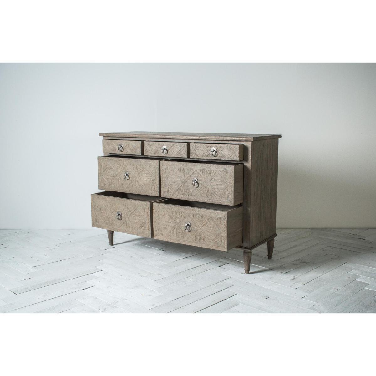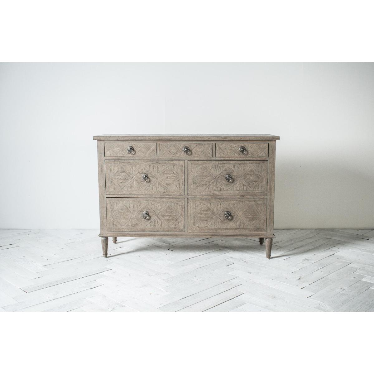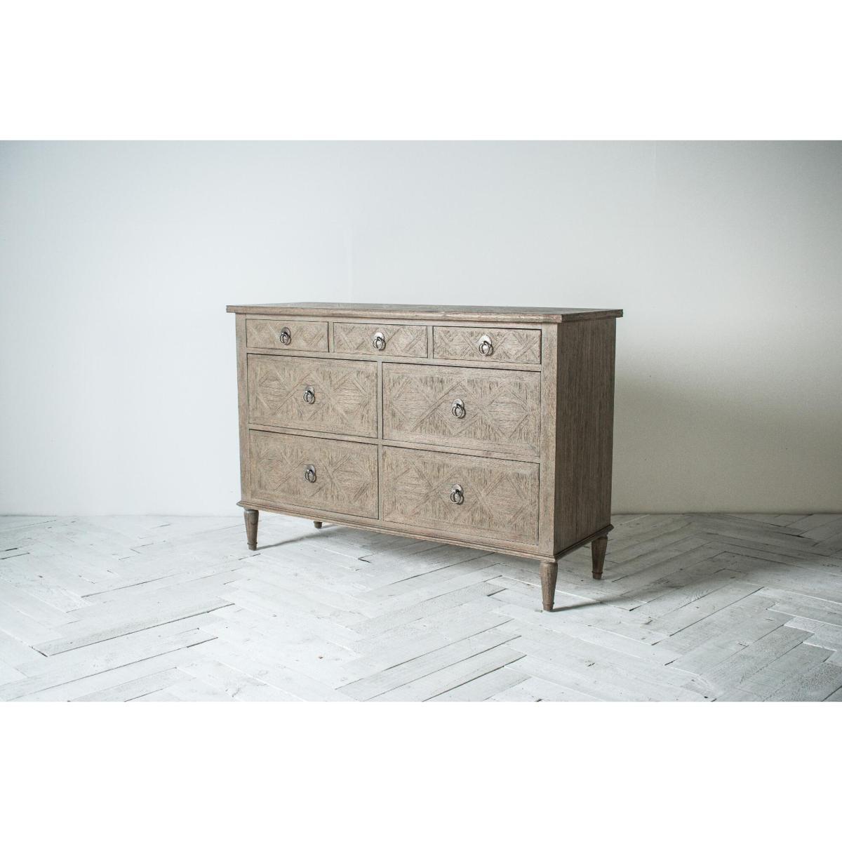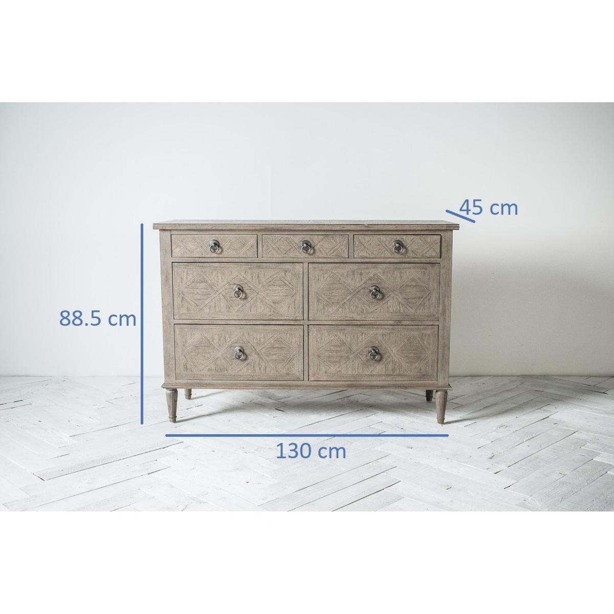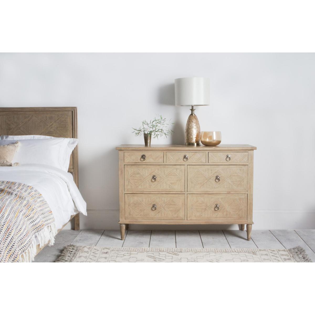 I’m a fan of this Juno chest for its subtle carving and muted finish, which slot straight into both Scandi-inspired and more traditional schemes. The seven drawers give you plenty of hidden storage in a hallway or bedroom without looking bulky. Styling tip: keep the top clear of clutter by anchoring a slim table lamp and a low vase of greenery on one side, plus a small stack of books or a framed photo on the other. A neutral runner rug beneath will tie the look together and soften hard floors.