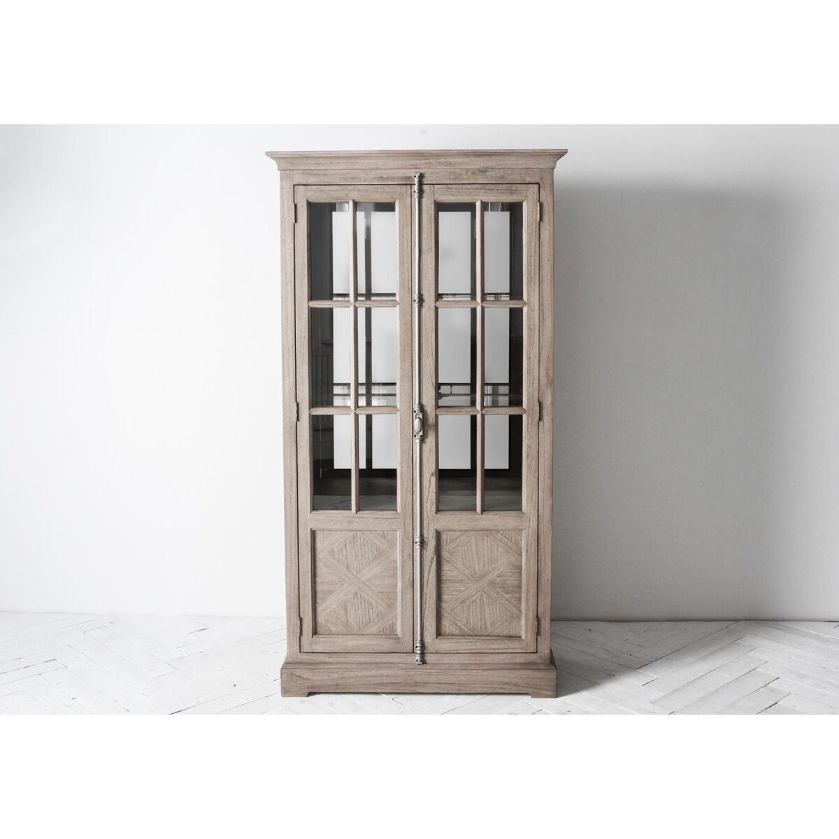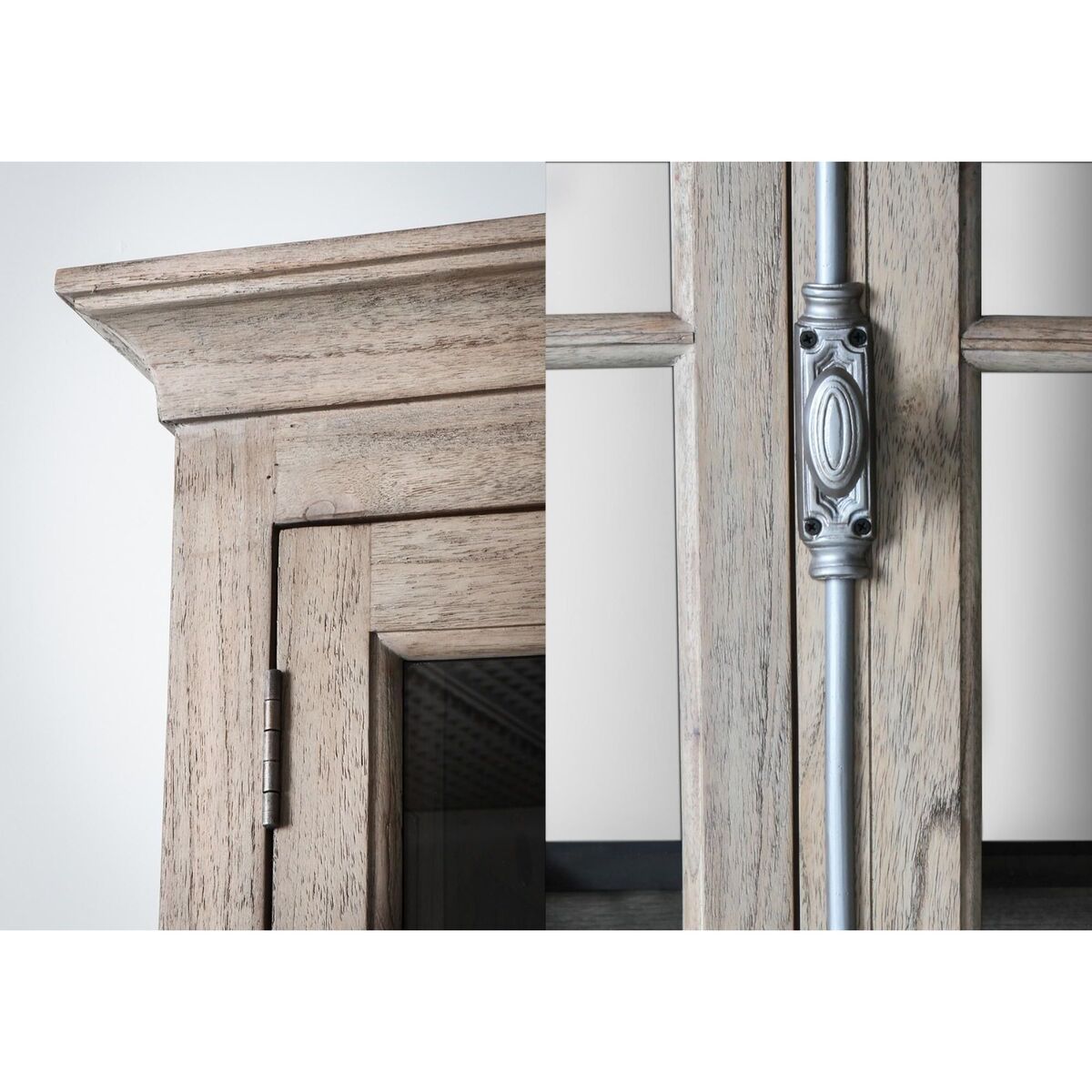 Your favourite crockery and glassware have just found the place of their dreams: The Juno display cabinet. This is a design that will delight urbanites, as it transfers the bucolic charm of a farmhouse kitchen with its robust but appealing wooden construction. Crafted from Mindy wood, the symmetric doors of the Juno combine a trio of textures with elegant results - smooth, see-through glass at the top, marquetry detailing at the bottom and a textured metal across. Inside, a mirror back and three shelves make the perfect display for your most cherished belongings, while the cupboard underneath offers additional storage space. The Juno is perfect for busy homes and cluttered interiors in need of a stylish but spacious storage solution.
