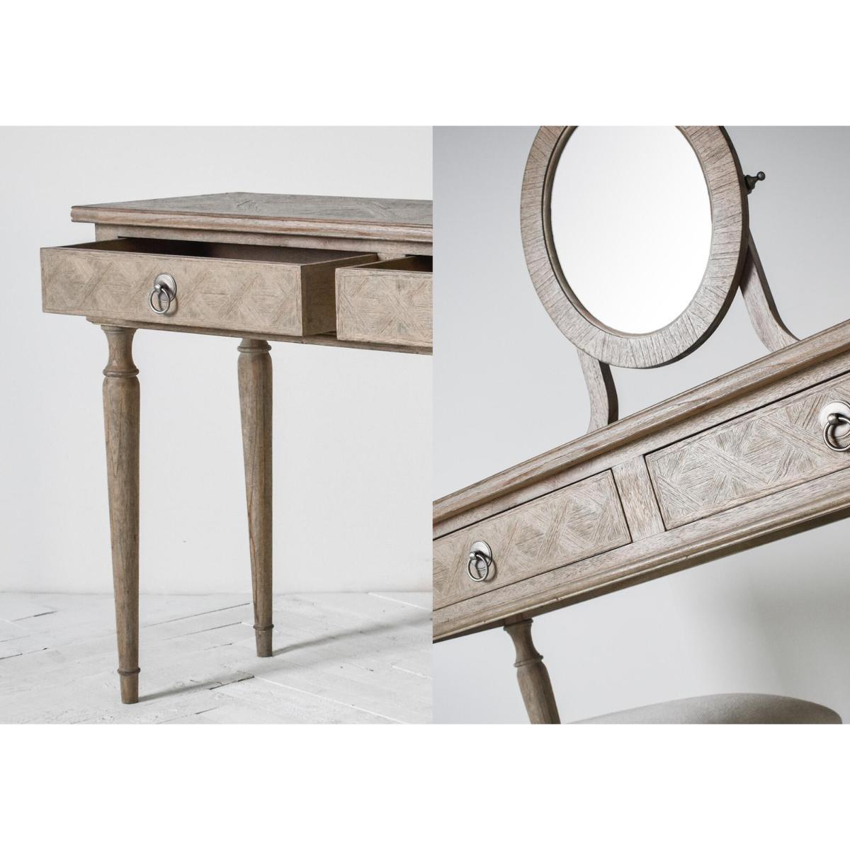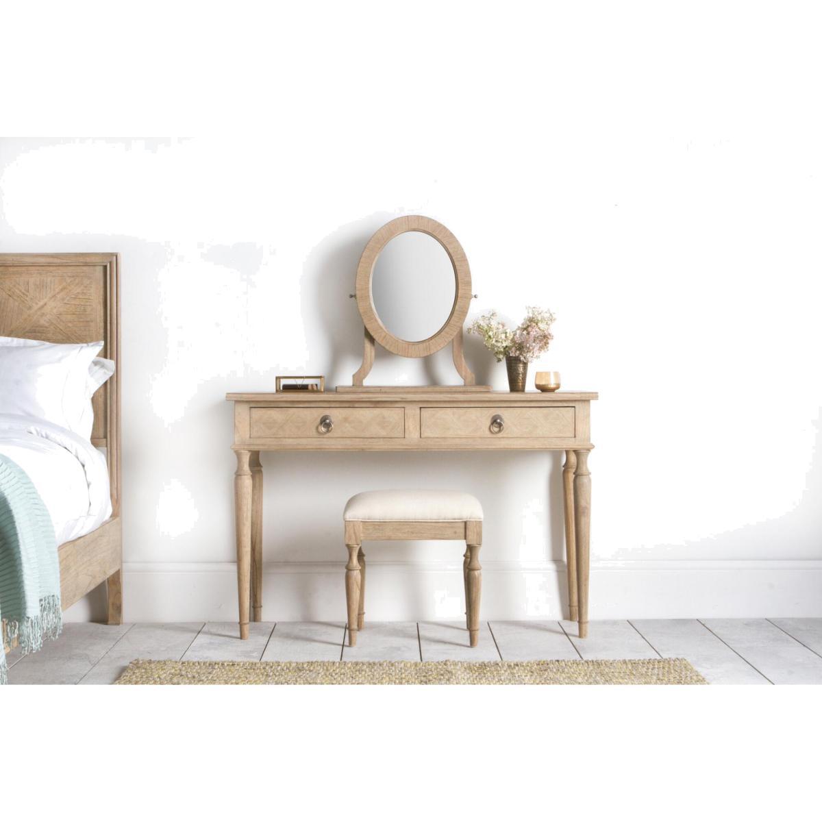 A quality dressing table like the Juno is paramount for transforming your bedroom into a luxurious space and creating the perfect setting to prep for the day ahead. Crafted in robust Mindy wood, the Juno has two spacious drawers to store any make up, jewelry and essentials for your beauty rituals. Marquetry detailing ornaments the front of the drawers and table top, adding texture to this beautiful piece that is held by slim, carved legs for a light and airy look. Team it with its matching mirror and dressing stool to pack your bedroom with a stylish ladylike feel.