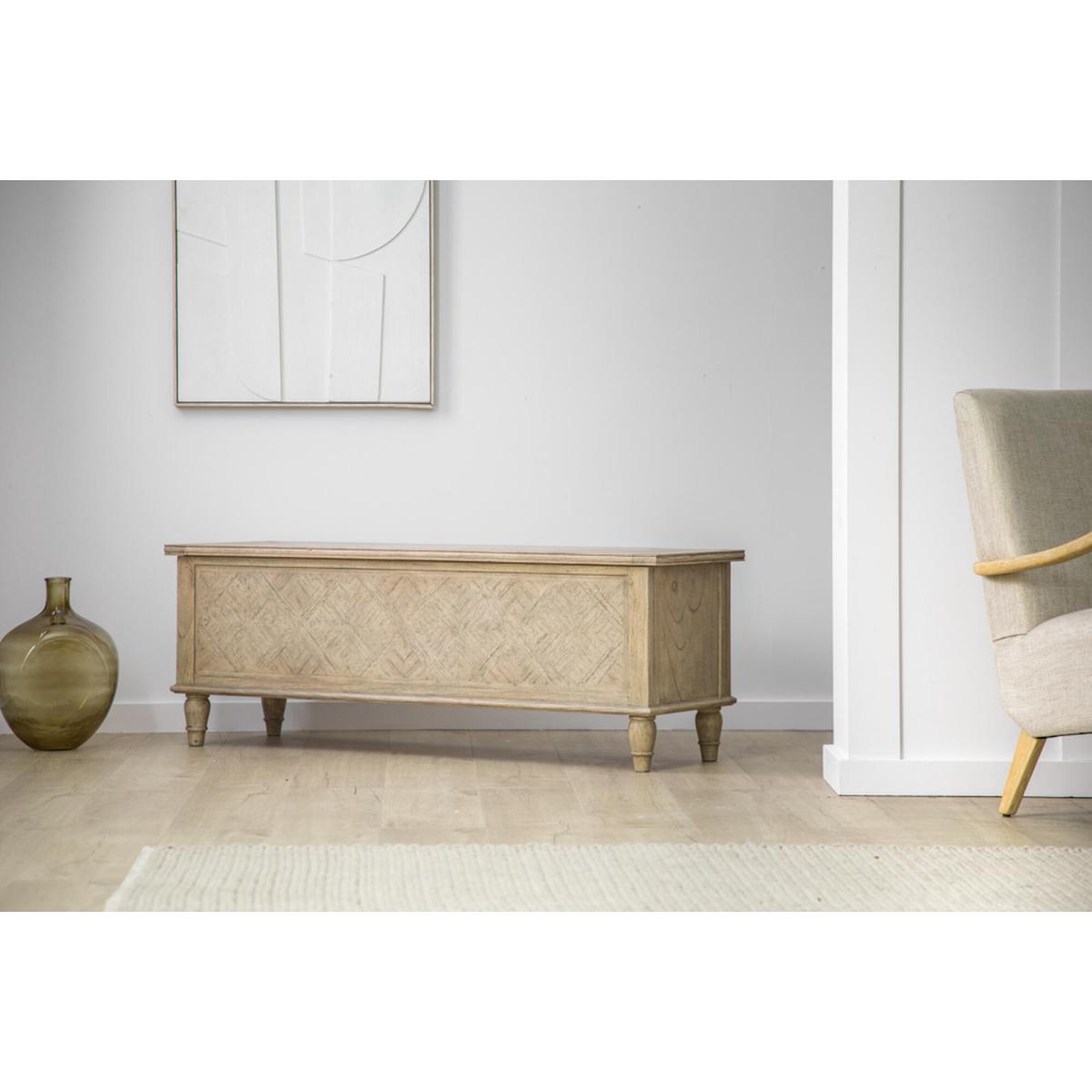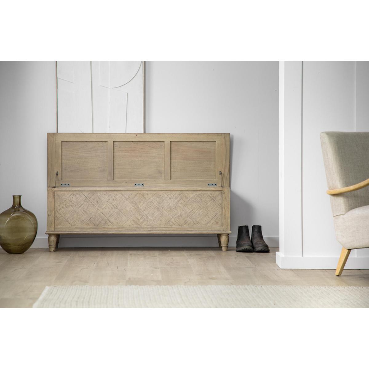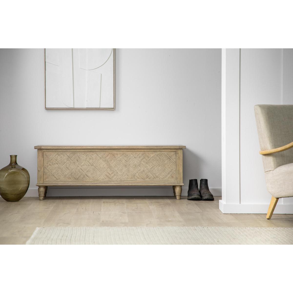 The Juno hall bench and storage chest is a shout to expert craftsmanship. A functional feature with plenty of storage space for your essentials. Mindy wood marquetry detailing throughout add the stylish touch