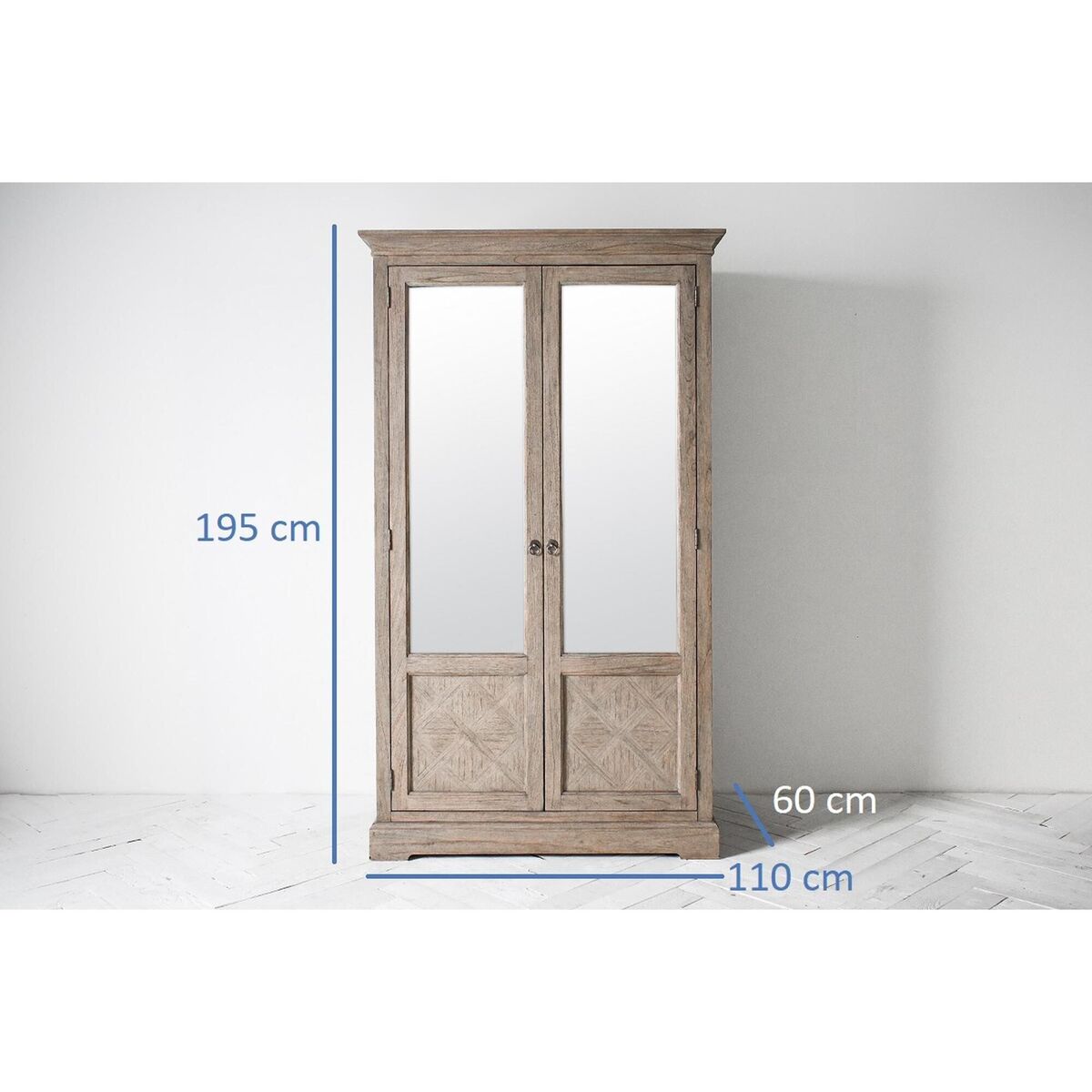 The Juno is a spacious wardrobe made from Mindy wood with beautiful marquetry detailing on the bottom of its front doors.