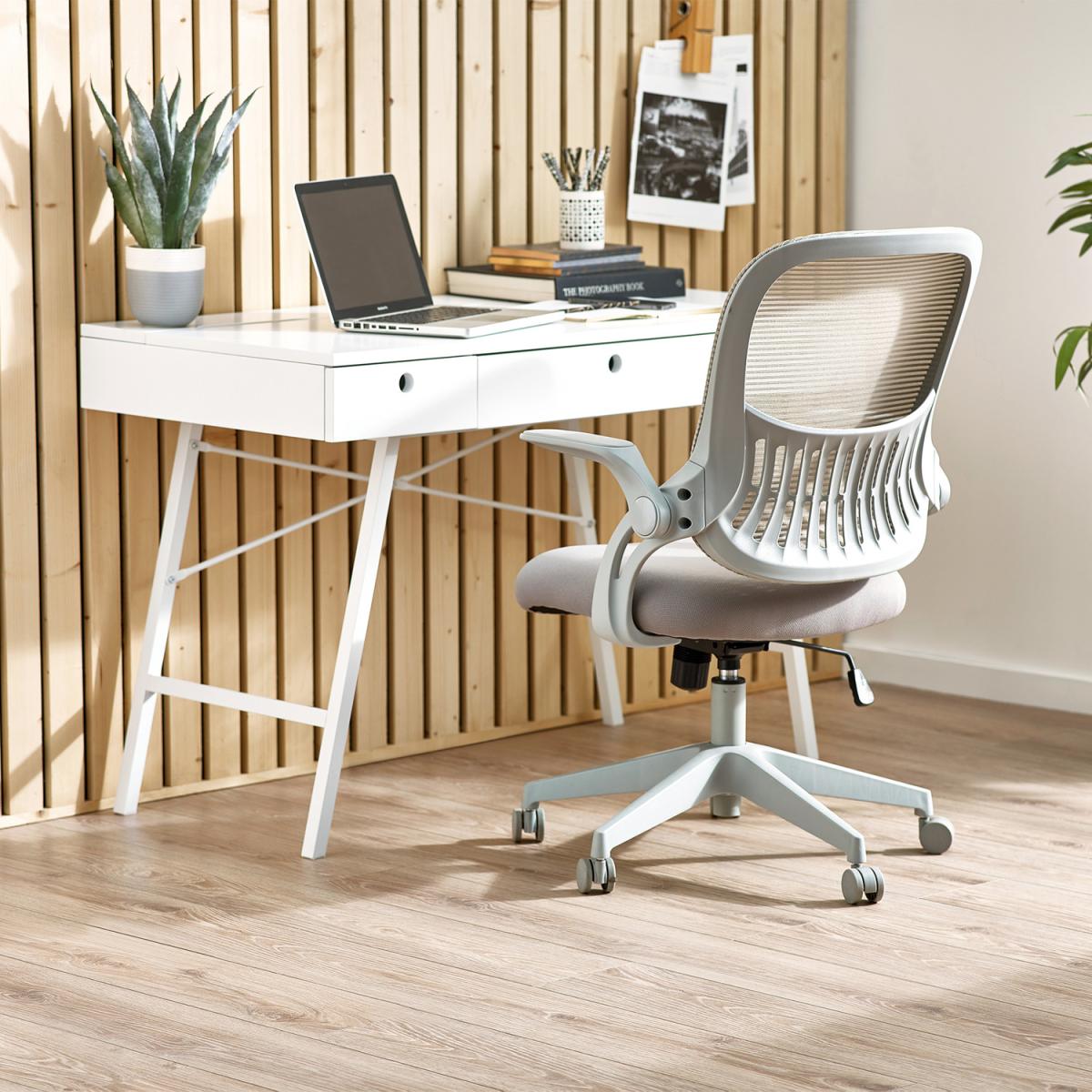 The Juno Office Chair is the perfect harmony of comfort and style, designed to elevate your workspace. With a meticulously designed curved grey mesh back, this chair ensures optimal support and breathability, guaranteeing ease throughout your workday. The grey frame back provides an additional layer of support, promoting ergonomic excellence and fostering ideal posture for a healthier work experience. Equipped with a grey base featuring five coasters and an adjustable height and tilt mechanism, allowing you to personalise your seating arrangement. The thoughtful addition of flip-up armrests adds convenience and flexibility to your office setup