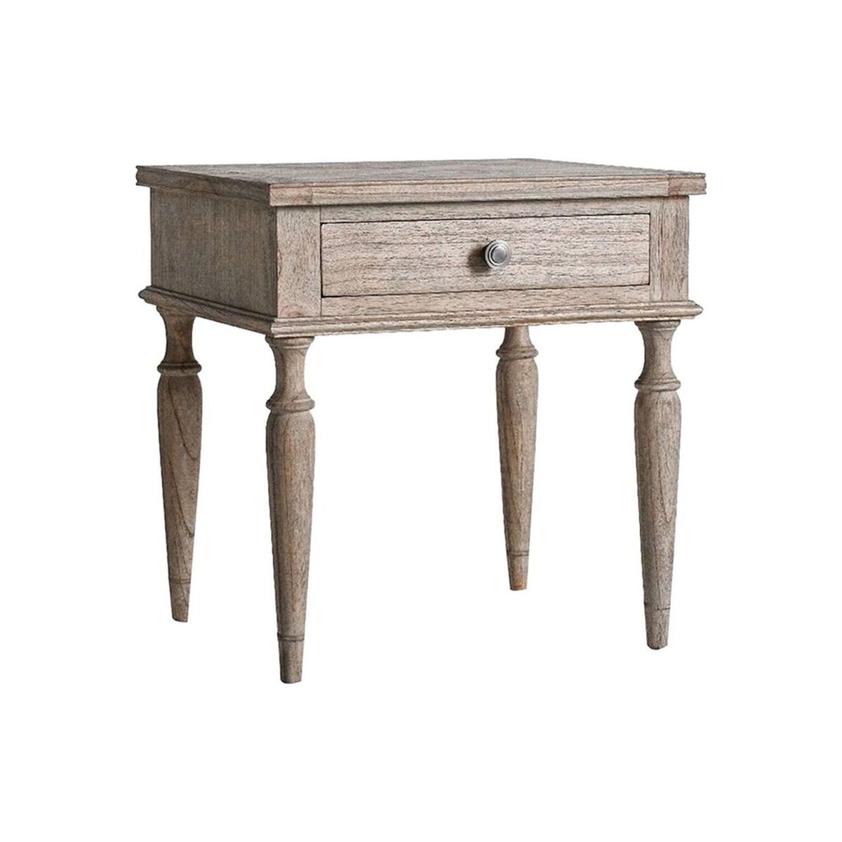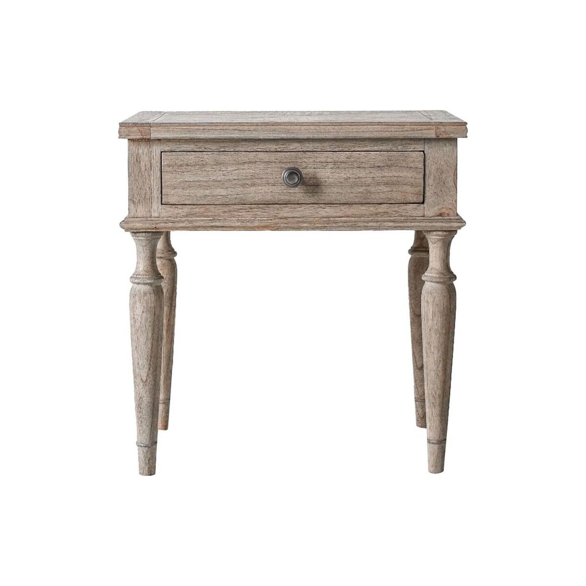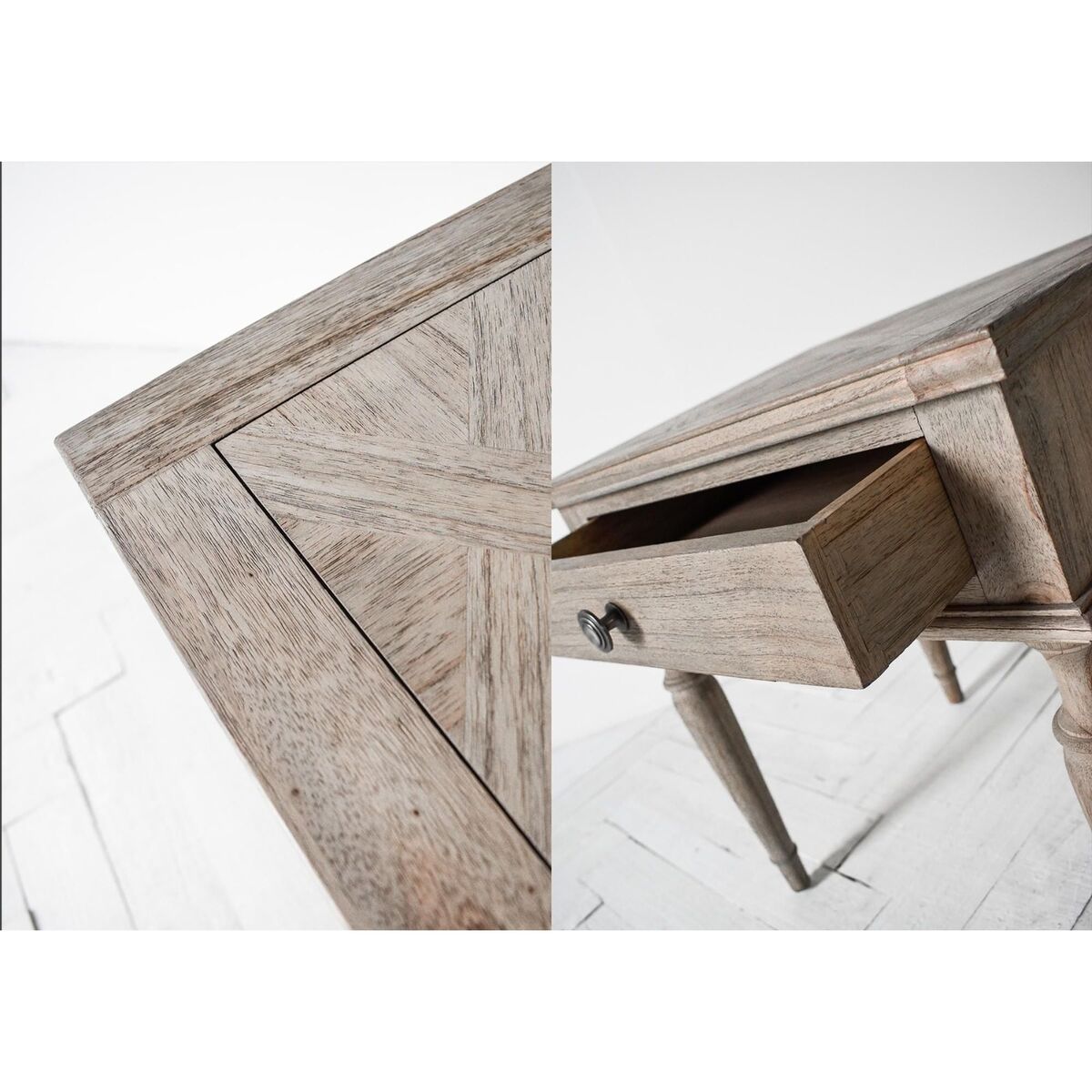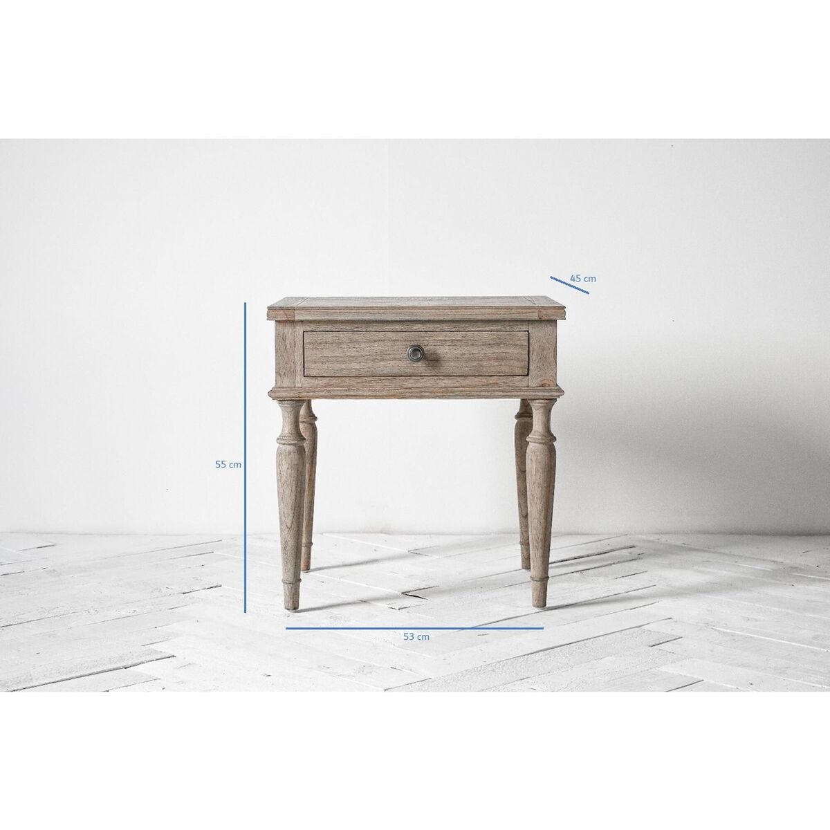 I’d reach for this Juno table whenever I need a small-scale surface that feels both lived-in and refined. Its light-washed timber and turned legs slot straight into schemes from modern farmhouse to Scandi-inspired living rooms, and the single drawer is handy for hiding remotes or bedside bits. To style it, keep the top clutter-free with a simple lamp, a slim vase or small potted plant and a couple of books, then layer in a soft rug beneath or a woven basket beside to ground the look.