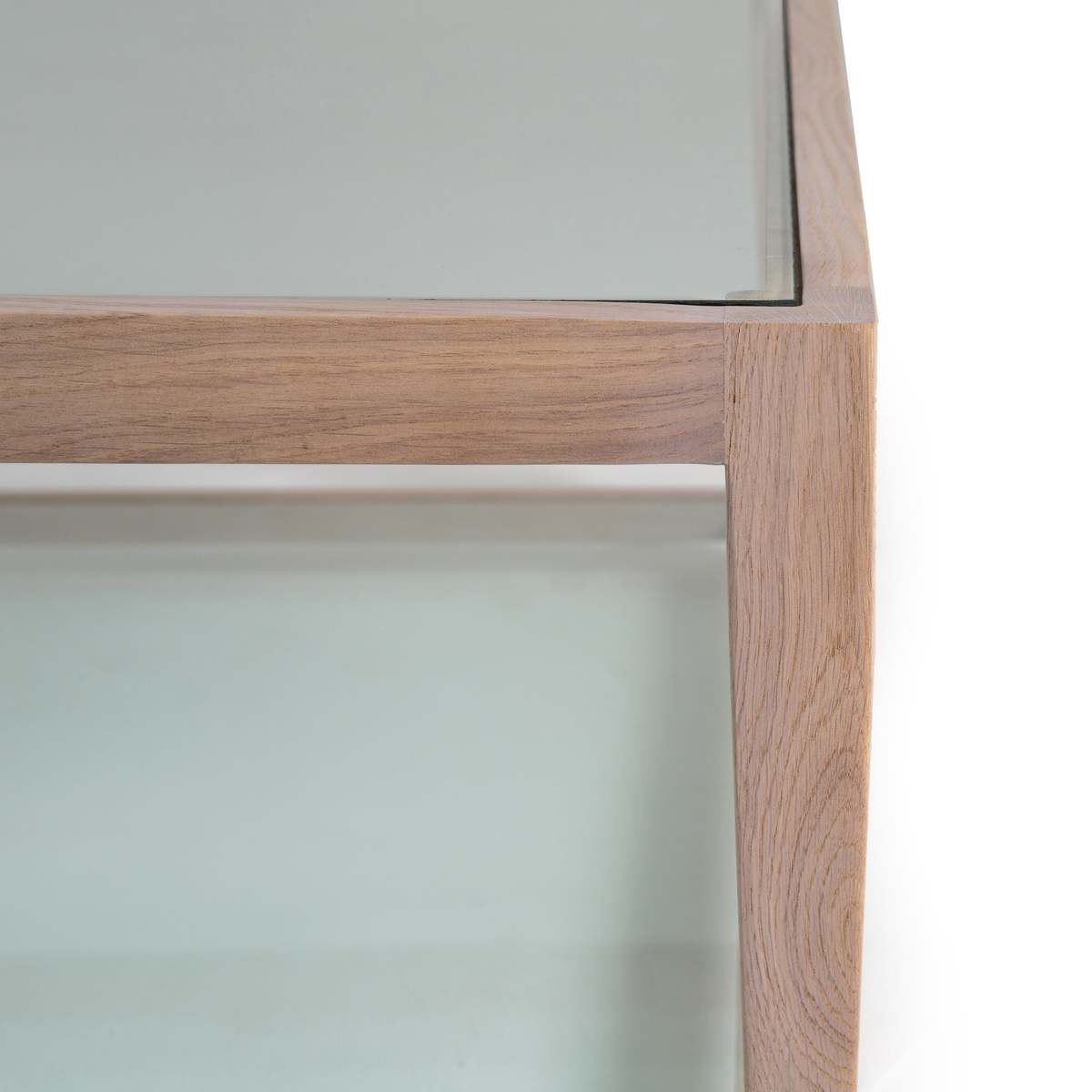 Junon coffee table. The natural feel of a fine oak frame and the transparent effect of glass bring elegance to this square table.