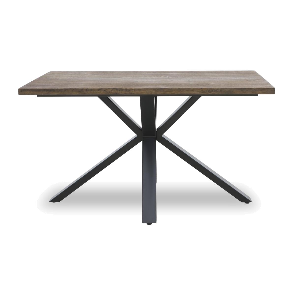I love this one for its contemporary yet versatile look-its solid wood surface paired with the striking star base makes it a real statement piece. It works well in modern interiors that lean towards industrial or minimalist styles, but it can also balance well with softer, eclectic schemes thanks to its natural wood finish. Practical styling tips include keeping tabletop decor minimal to highlight the unique base, and pairing it with budget-friendly or mixed-matter chairs for an eclectic vibe. It’s great as a dining focal point in open-plan kitchens or snug dining rooms, offering both sturdiness and style without overpowering the space.