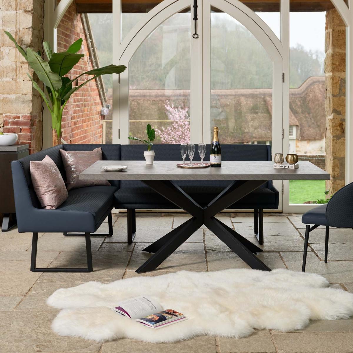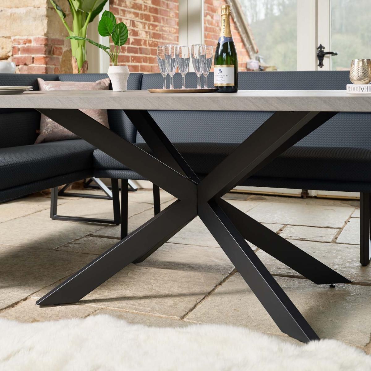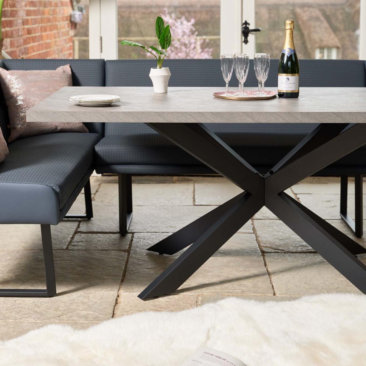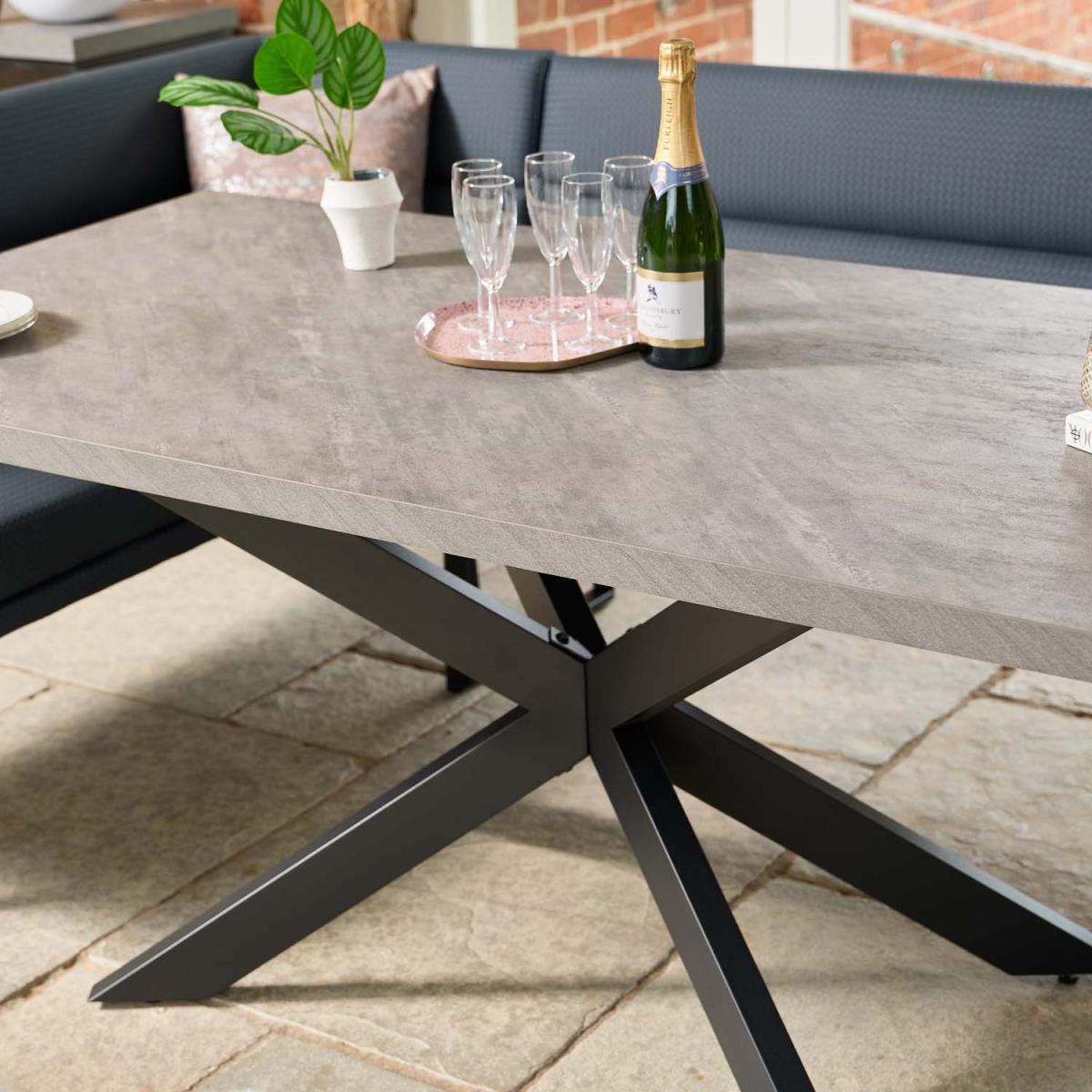 The Jupiter Dining Table is the ideal addition to any dining space. Its solid grey, faux concrete surface offers a strong yet stylish top to modern metal legs in a supportive star formation. With a timeless industrial design, this dining table will effortlessly take you from your morning coffee to your evening meal in style!.