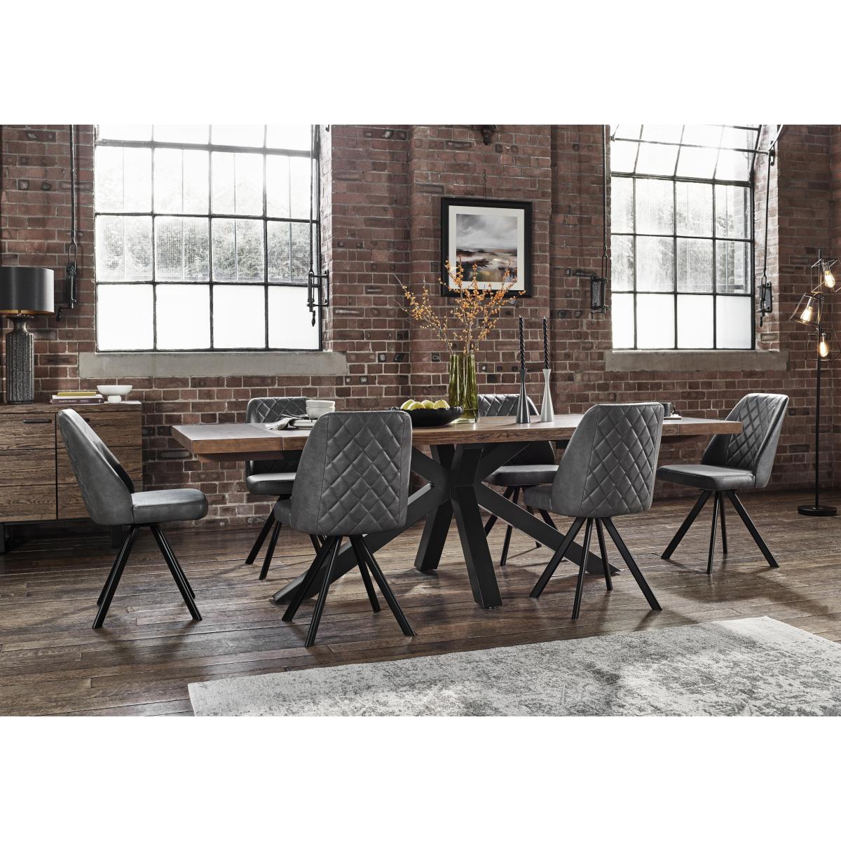 Enjoy the sophisticated side of industrial furniture with our contemporary Jupiter collection. Offering a warm-toned oak and oak veneer look with a modern lacquered finish, the range includes a wide choice of extendable and extending dining tables. Create your own dining set by adding swivel dining chairs in faux leather or a dining bench or two – or make life easier by opting for one of the collection’s dining sets. And with sideboards and shelving, lamp tables and coffee tables, Jupiter looks beautiful in any room. You’ll also find bar tables and bar stools that bring fashionable urban style and space-saving seating to kitchen diners. The Jupiter collection is exclusive to Furniture Village.