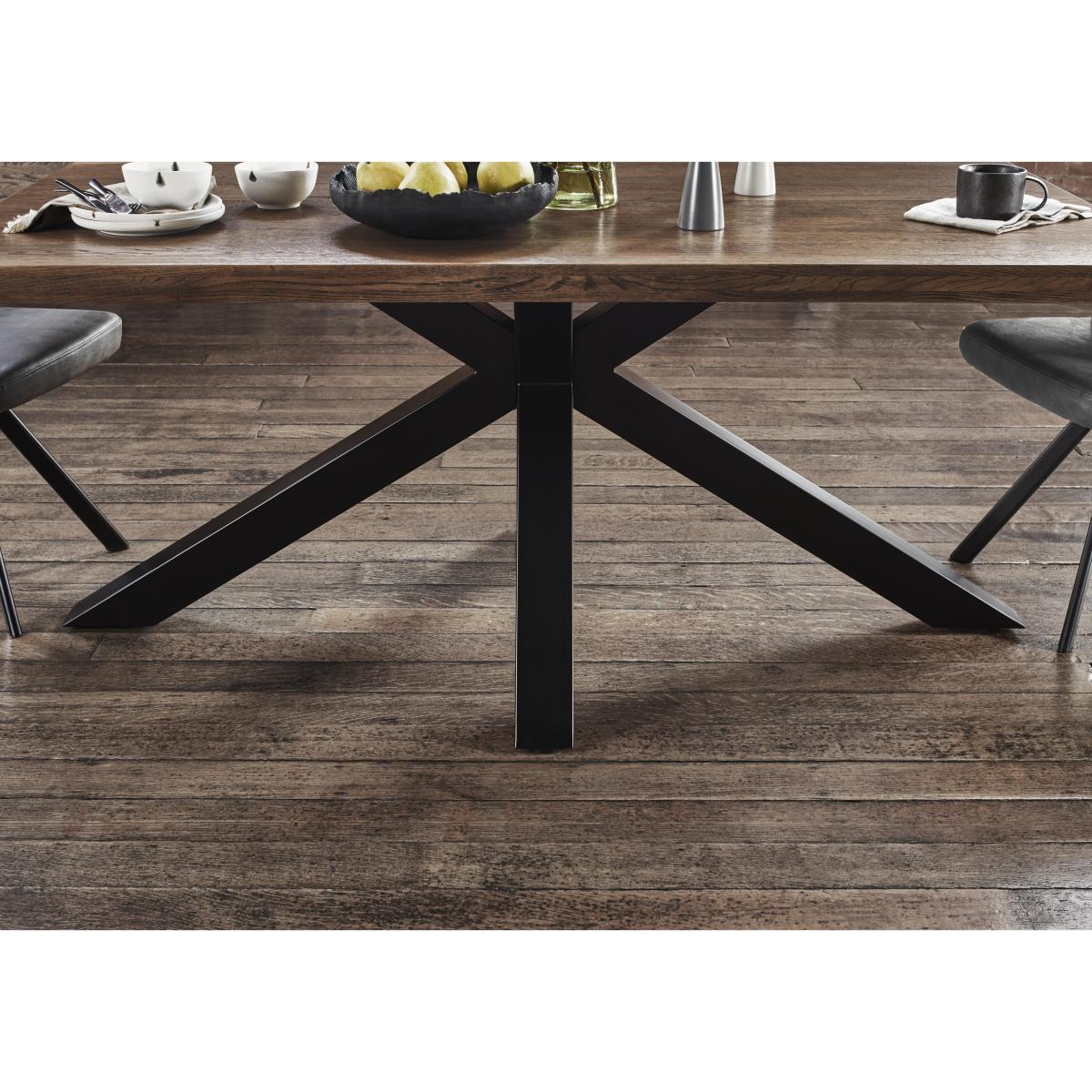 I love this table for its contemporary yet versatile design. The star-shaped base adds a touch of visual interest and modern flair, making it a statement piece in both minimalist and more eclectic interiors. It works particularly well in urban, industrial, or Scandinavian-inspired spaces, where its raw wood finish and sleek black base can complement a range of colour palettes and textures. Practical styling tips include pairing it with simple, understated chairs to keep the focus on its design, or adding a pop of colour with bold placemats or a vivid centrepiece for a more lively look. This table’s sturdy construction and generous size make it perfect for family dinners or entertaining, while its clean aesthetic ensures it remains adaptable over time.