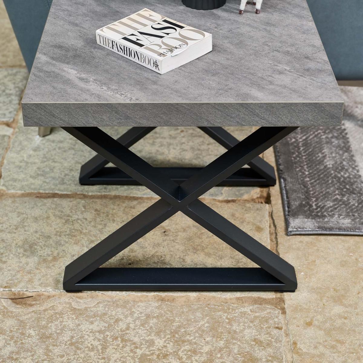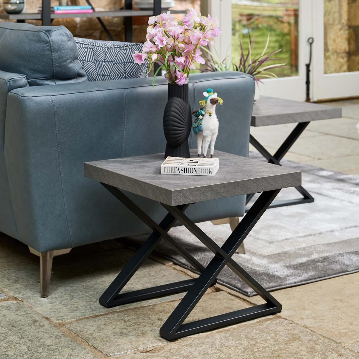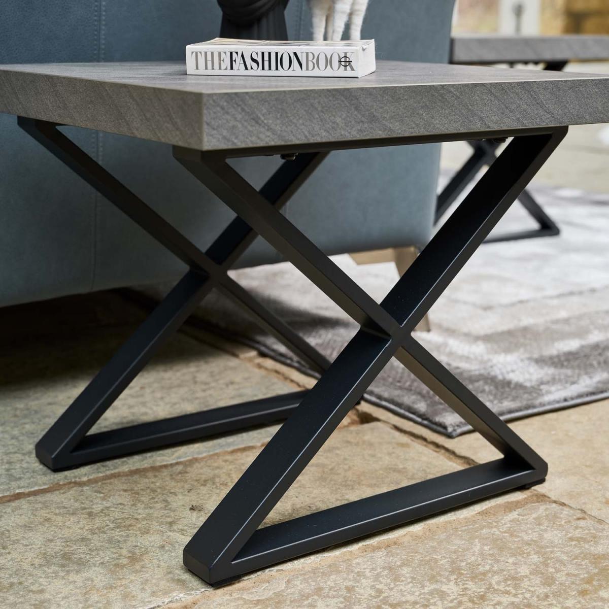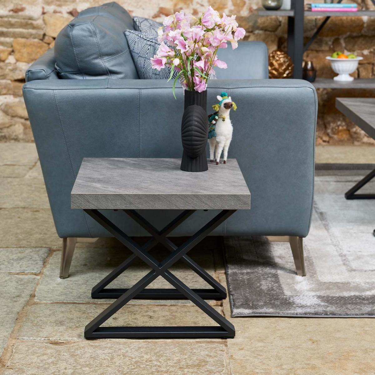 The Jupiter Lamp Table is the ideal addition to any living space. Its solid grey, faux concrete surface offers a strong yet stylish top to modern metal legs in a stylish cross shape. With a timeless industrial design, this side table will effortlessly hold your books, drinks, or plants close to hand while you relax in front of the TV.