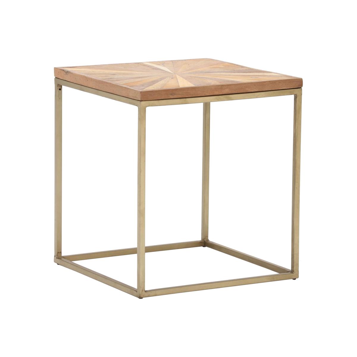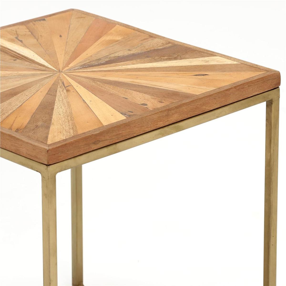 Design. Simply stylish with a minimalist, geometric design, the Jupiter combines industrial iron and rustic reclaimed wood to create this beautiful side table that is perfect for adding style to any room. Featuring an antique brass finish on its sturdy base, the Jupiter’s top has a lacquered finish to accentuate its natural knots and grains, and offers extra surface space - even in those smaller rooms.