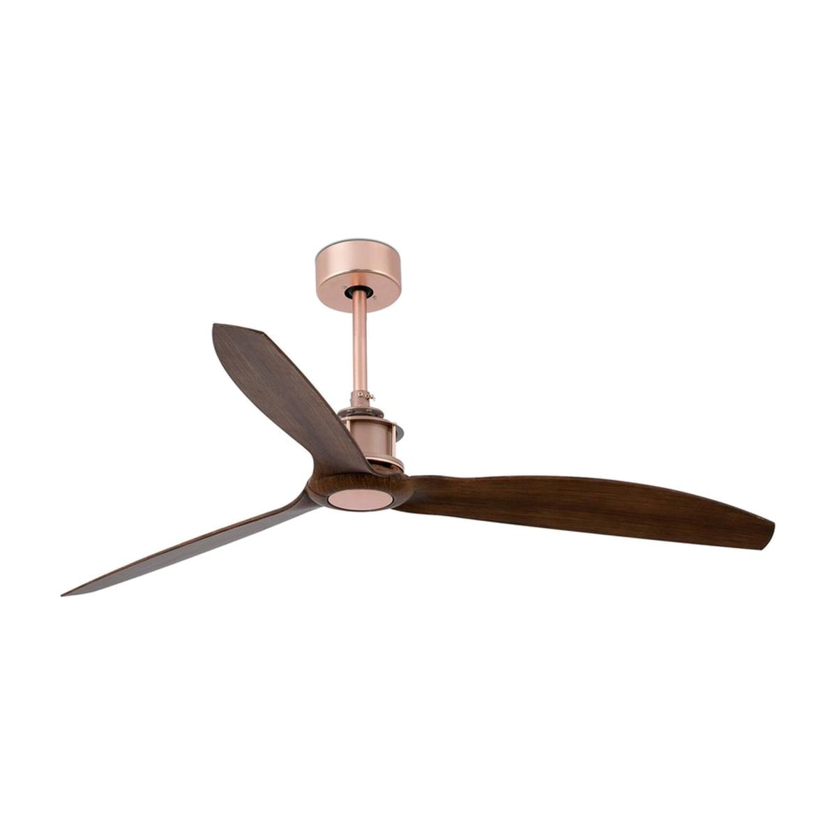 JUST FAN is the very essence of an industrial-style and modern fan. The stylised metal frame creates a striking, mould-breaking design. This modern ceiling fan is ideal for the ventilation of areas ranging from 13m2 to 17,6m2. Activated by remote control. This fan comes with a reverse function summer-winter, so you can also use it in winter, improving the efficiency of your heating system. Airflow 145,7 m3 min 5145 CFM. Control your fan with Wi Z. It works with WIFI 2.4 GHz and it does the same features as a remote control. It is compatible with Alexa, Google assistant amp Siri. Smart receiver included. Minimalist and sleek the Faro Lighting Just Fan in Copper and Wood Ceiling Fan is ideal for year-round comfort. Its industrial-inspired style is great for many decorating aesthetics. It is powered by a low-consumption DC motor and it can be activated by a remote control or WIFI compatible WIZ that works with Alexa, Google assistant, and Siri.