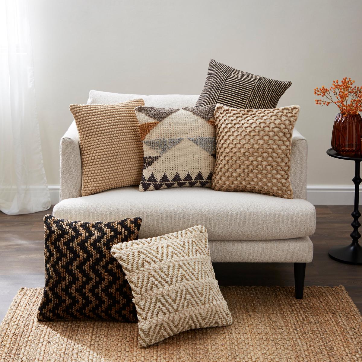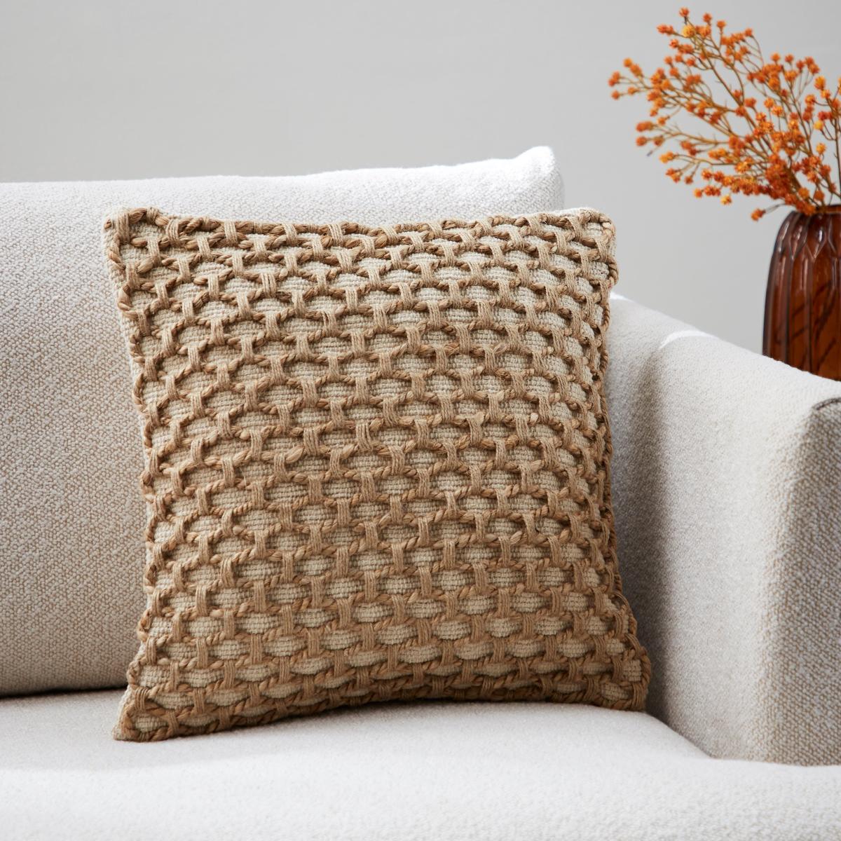 I really like this cushion for its natural, textured look, which adds a warm and inviting touch to both contemporary and rustic interiors. The combination of jute and cotton makes it versatile enough to work well in neutral, earthy schemes or layered with other textured textiles for a more eclectic feel. It's practical too - the woven design offers durability for everyday use. To style it effectively, consider pairing with similarly natural fibres or pairing with a smooth fabric cushion to create contrast. It works particularly well on sofas or armchairs where you want to introduce a cosy, tactile element without sacrificing style.