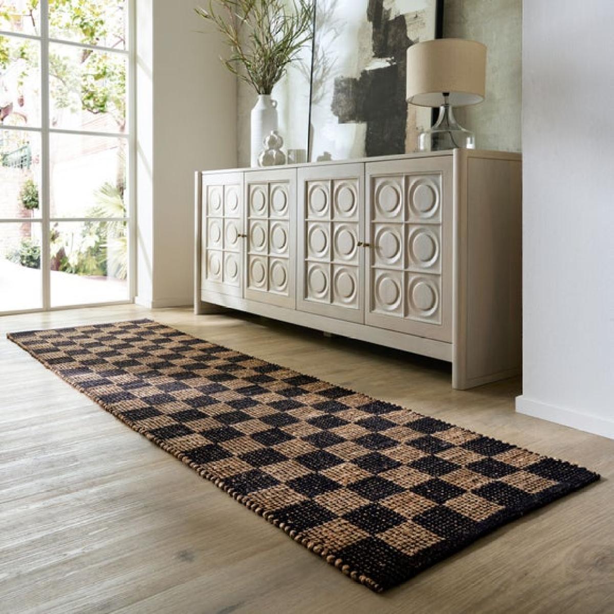 * Classic Checkerboard Design * Chunky Jute Texture * Hardwearing * Jute Cotton Blend Add a modern twist to your home with the Jute Checkerboard Runner. Featuring a classic checkerboard design with a fresh, contemporary feel. The chunky jute texture adds organic depth and warmth, making it a standout piece in natural, earthy interiors. Crafted from a durable jute and cotton mix, it offers both strength and softness, perfect for high-traffic areas like corridors or entrance hallways. The Rug Pictured is: 60cm x 230cm. Care Instructions: Natural fibre rugs such as jute, sisal and seagrass are crafted from plant-based materials, so each one is unique and naturally beautiful. Unroll your rug and leave for 24 hours during first use. Maintain your Jute rug by shaking to remove trapped dirt and debris. Vacuum regularly with a nozzle attachment. Cut any loose fibres with scissors, do not pull. Avoid water and cleaning products, as they could damage or fade the rug. For accidental spills blot immediately with a dry white cloth, do not rub as this may stain the fibres. Rotate every few months to prolong the life of your rug.