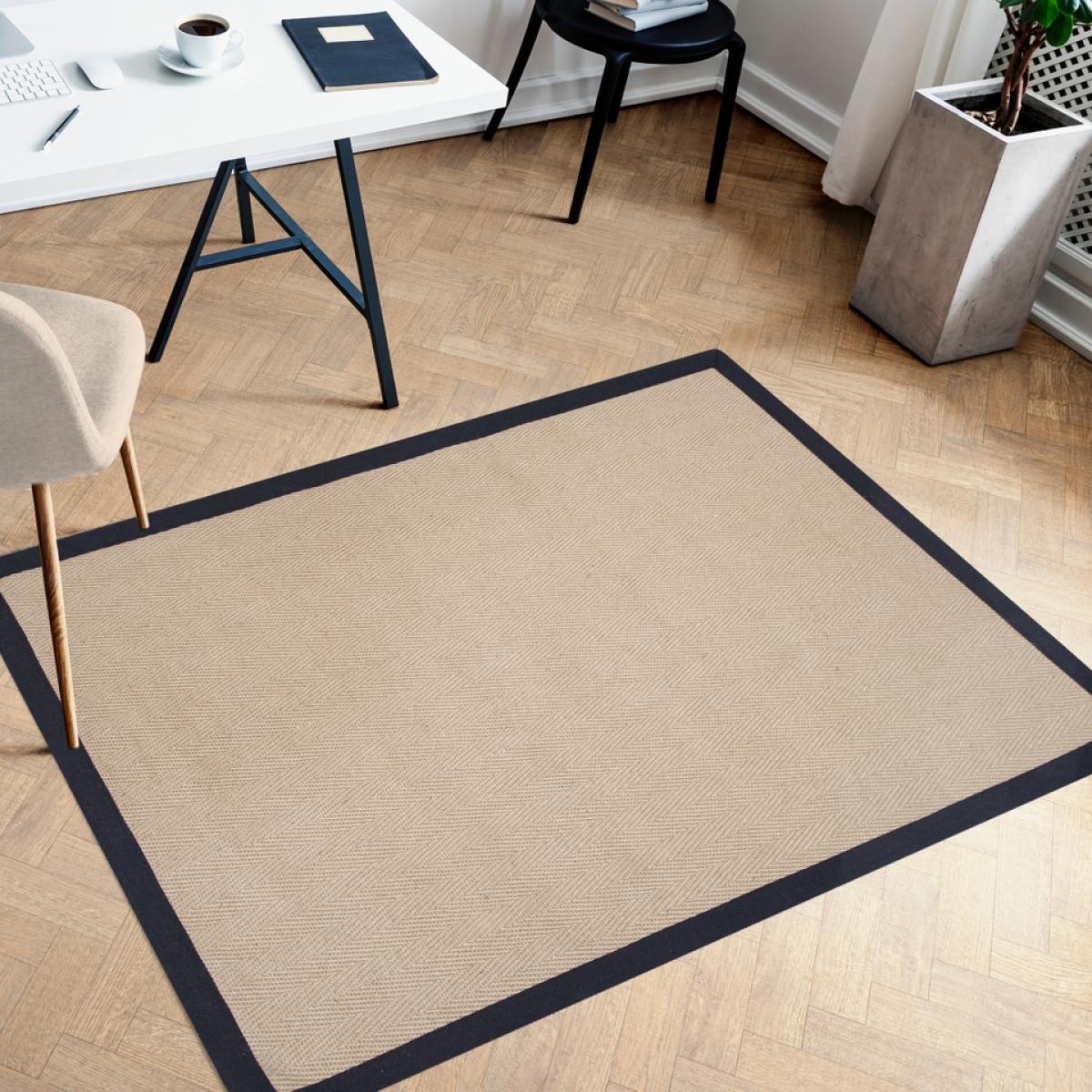 This striking jute herringbone rug will provide an on-trend look to your living space. The classic black coloured border looks timeless and will add a touch of class to your décor.