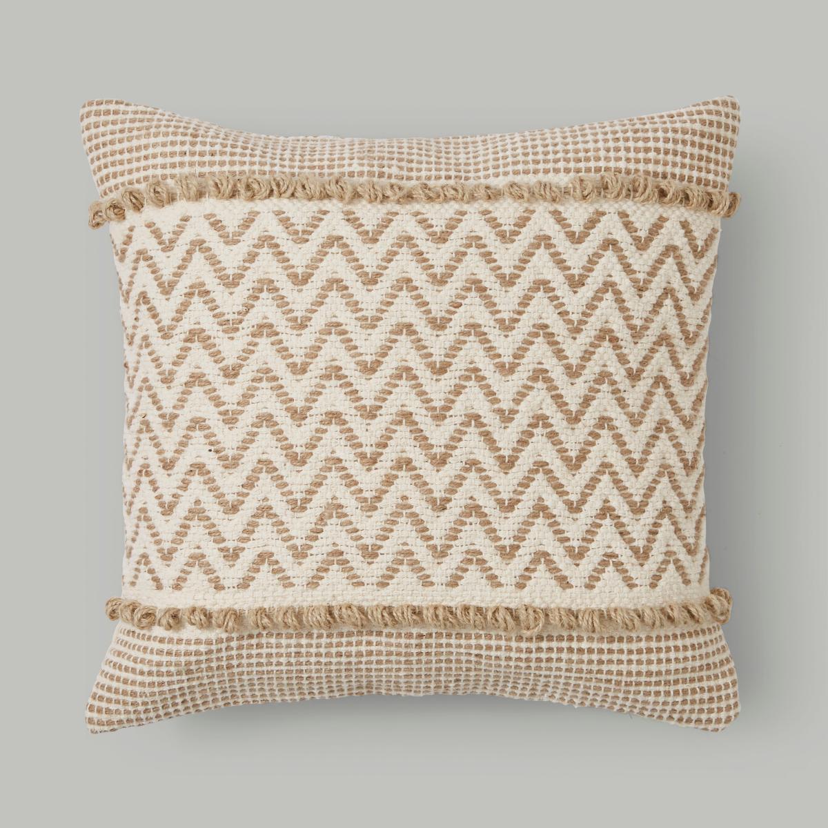 * Made from Cotton Jute * Natural colourway * Woven design * Removable cover Bring elegance into your living space with the Jute Ivory Zig Zag Square Cushion. With textures zigzags and extra tassels, this cushion is sure to add an element of uniqueness to your sofa. Filled with polyester fibre for comfort.