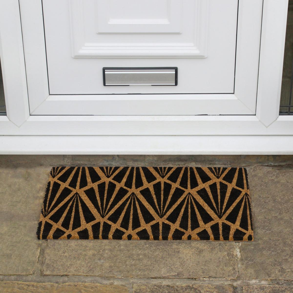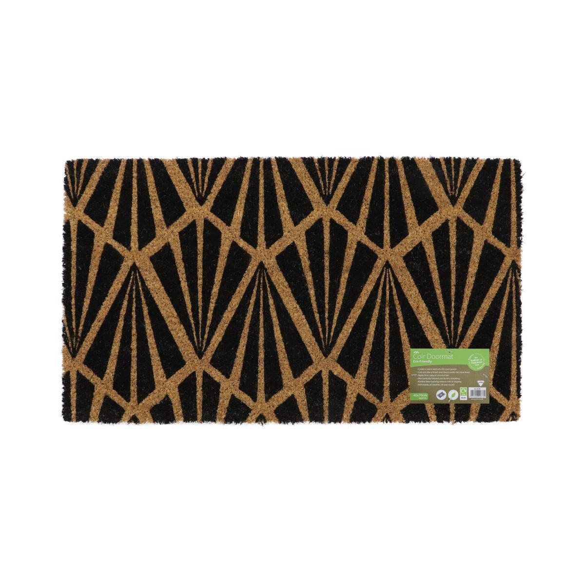 Ensure your house guests are greeted with a clean and safe entrance to your home with JVL’s premium quality Eco Latex Coir Doormat featuring a simply stylish art deco design. Keeping the dirt and mud outside where it belongs, this coir is made from 100% natural materials and features a latex backing to help prevent slipping and keep the mat flat on the floor. The thick coir fibres effectively scrape mud and dirt off of shoes and boots, while also absorbing water to keep your floors cleaner. The mat is suitable for all weathers and can be used both indoors and outdoors, plus, the coir fibres have been mechanically twisted to reduce shedding. When the mat reaches the end of its life, it is 100% biodegradable and even the packaging and kimbles are recyclable.