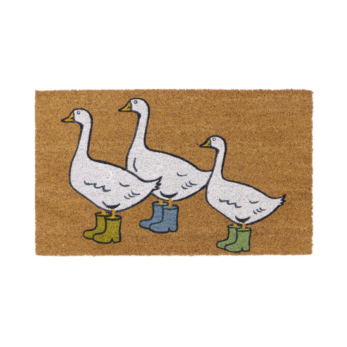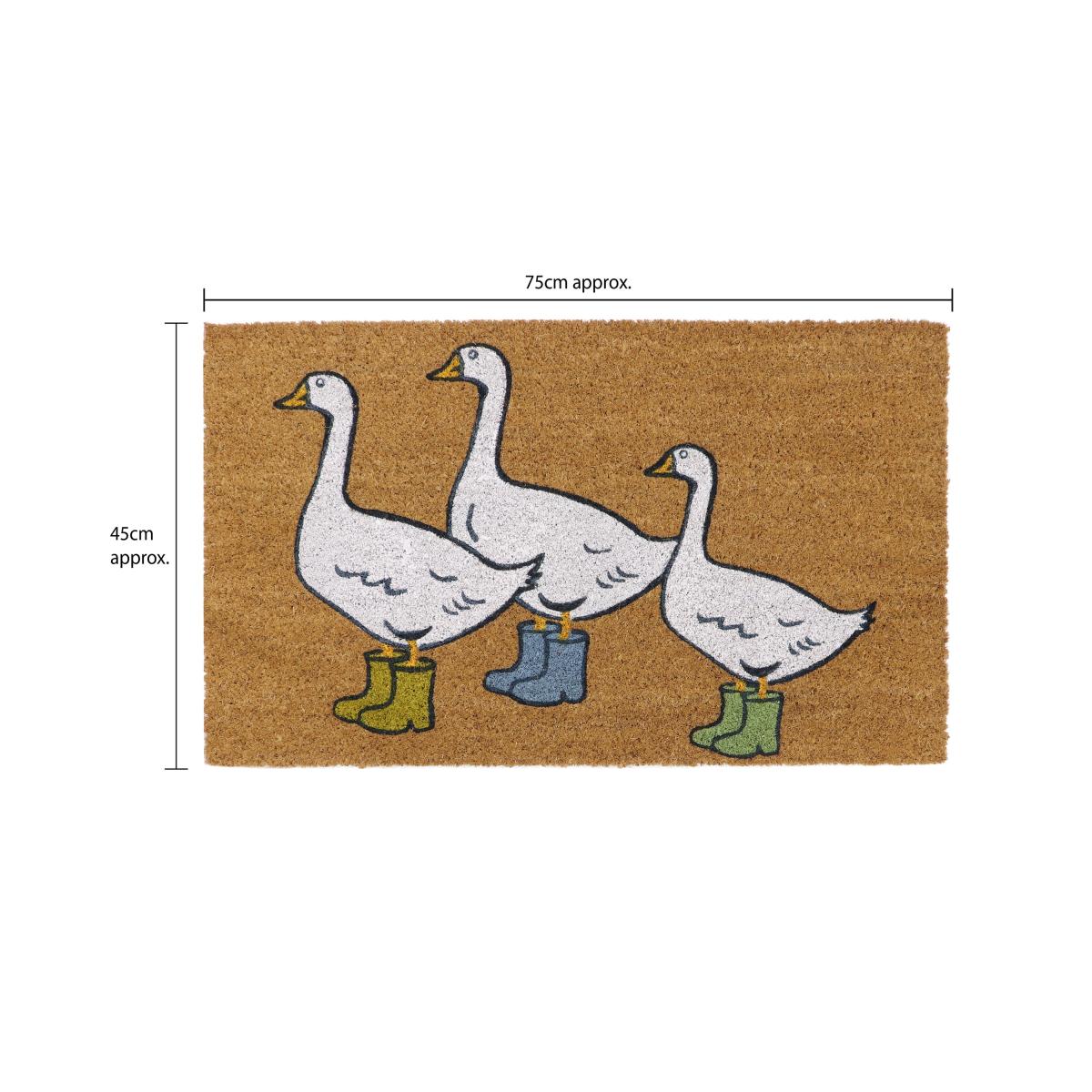 Give a warm welcome to your house guests with JVL’s Eco Latex Coir Doormat offering a premium quality mat with a simply delightful design featuring a fun group of geese. Made from 100% natural coir, jute, and natural latex, it offers excellent scraping qualities for muddy shoes and boots and absorbs water well, meaning your floors stay cleaner for longer. With the coir being mechanically twisted for less shedding, the coir strands will stay on your mat and not on the floor and when your doormat has served its purpose, it is 100% biodegradable so the natural coir will disintegrate with one year and the latex compound will disintegrate within five years, subject to soil conditions. The rubber latex backing reduces the risk of slipping and helps the mat stay flat to the floor with no curling so it’s great for all weathers, all year round, and can be used both outdoors and indoors. Even the packaging and kimbles are recyclable!.
