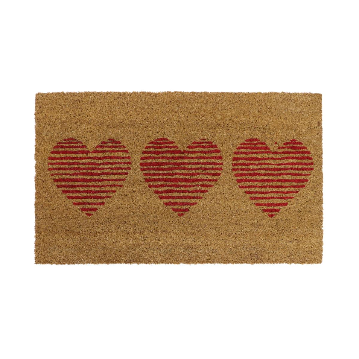 Create an uplifting and welcoming entrance to your home with JVL’s premium quality Eco Latex Coir Doormat featuring a design of simple and delightful red hearts. This coir doormat is made from 100% natural materials and features a latex backing to help prevent slipping and keep the mat flat on the floor. The thick coir fibres effectively scrape mud and dirt off of shoes and boots, while also absorbing water to keep your floors cleaner. The mat is suitable for all weathers and can be used both indoors and outdoors, plus, the coir fibres have been mechanically twisted to reduce shedding. When the mat reaches the end of its life, it is 100% biodegradable and even the packaging and kimbles are recyclable.