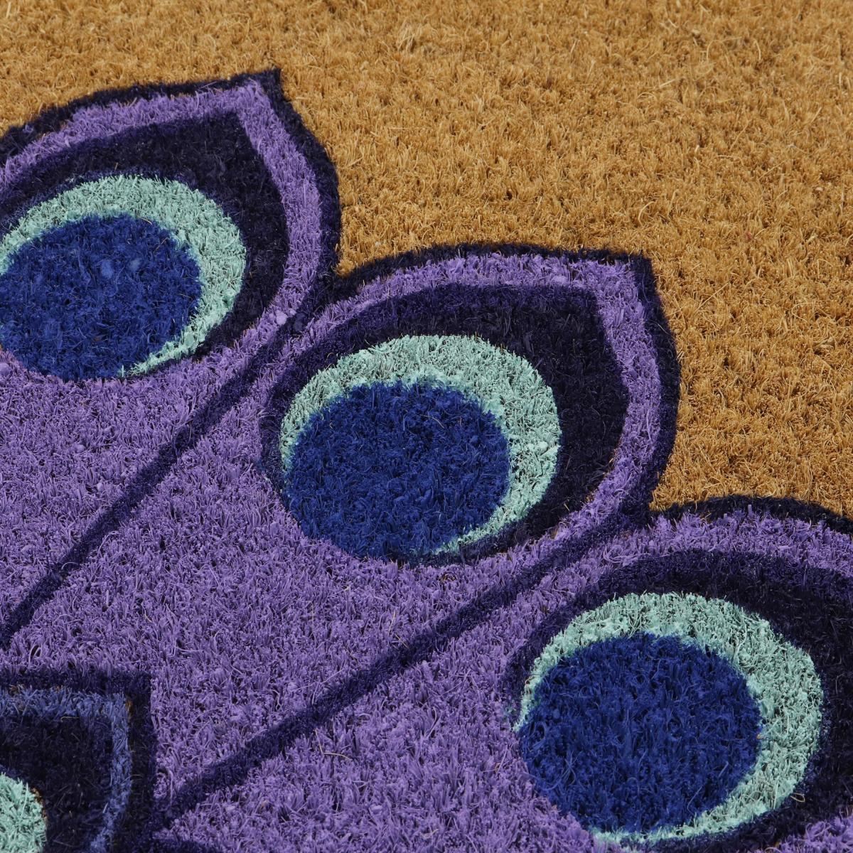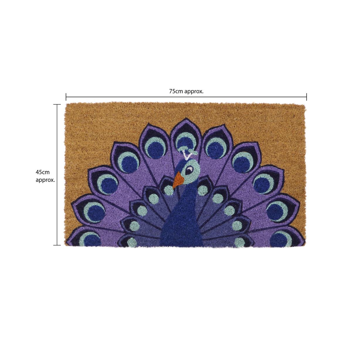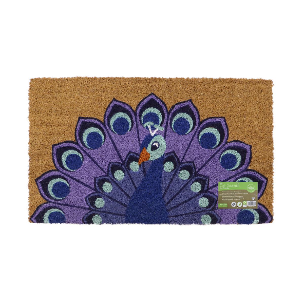 Give your house guests a greeting full of vibrancy and colour with JVL’s premium quality Eco Latex Coir Doormat featuring a striking purple peacock design. Keeping the dirt and mud outside where it belongs, this coir doormat is made from 100% natural materials and features a latex backing to help prevent slipping and keep the mat flat on the floor. The thick coir fibres effectively scrape mud and dirt off of shoes and boots, while also absorbing water to keep your floors cleaner. The mat is suitable for all weathers and can be used both indoors and outdoors, plus, the coir fibres have been mechanically twisted to reduce shedding. When the mat reaches the end of its life, it is 100% biodegradable and even the packaging and kimbles are recyclable.