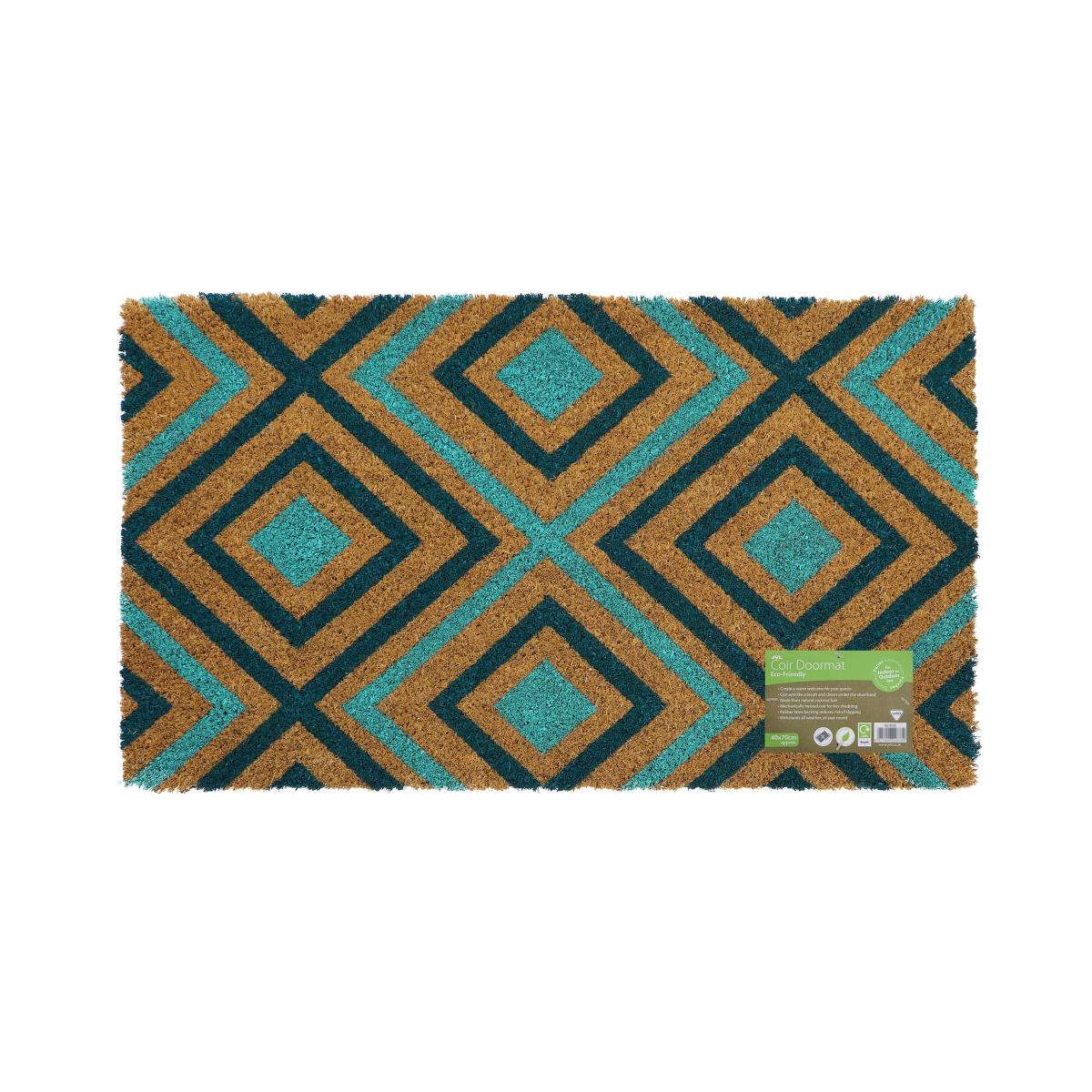 Bring colour and character to your front door while keeping the dirt and mud out of your home with JVL’s Eco Latex Coir Doormat in a funky and colourful diamond design. Made from 100% natural coir, jute and natural latex, it offers fantastic scraping qualities for muddy shoes and boots and absorbs water well, meaning your floors stay cleaner for longer. The rubber latex backing reduces the risk of slipping and helps the mat stay flat to the floor with no curling so it’s great for all weathers, all year round, and can be used both outdoors and indoors. With the coir being mechanically twisted for less shedding, the coir strands will stay on your mat and not shed on the floor and when your doormat has served its purpose, it is 100% biodegradable so the natural coir will disintegrate with one year and the latex compound will disintegrate within five years, subject to soil conditions. Even the packaging and kimbles are recyclable!.