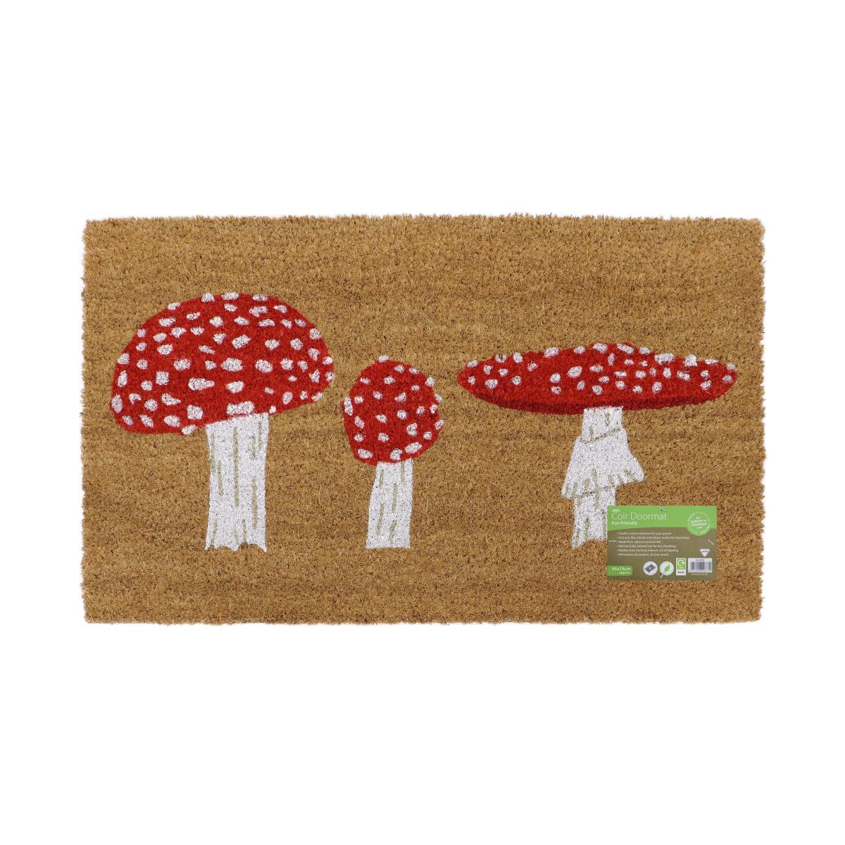 Create a warm welcome for your house guests with JVL’s premium quality Eco Latex Coir Doormat featuring a cute and colourful design of a group of toadstools. Keeping the dirt and mud outside where it belongs, this coir doormat is made from 100% natural materials and features a latex backing to help prevent slipping and keep the mat flat on the floor. The thick coir fibres effectively scrape mud and dirt off of shoes and boots, while also absorbing water to keep your floors cleaner. The mat is suitable for all weathers and can be used both indoors and outdoors, plus, the coir fibres have been mechanically twisted to reduce shedding. When the mat reaches the end of its life, it is 100% biodegradable and even the packaging and kimbles are recyclable.