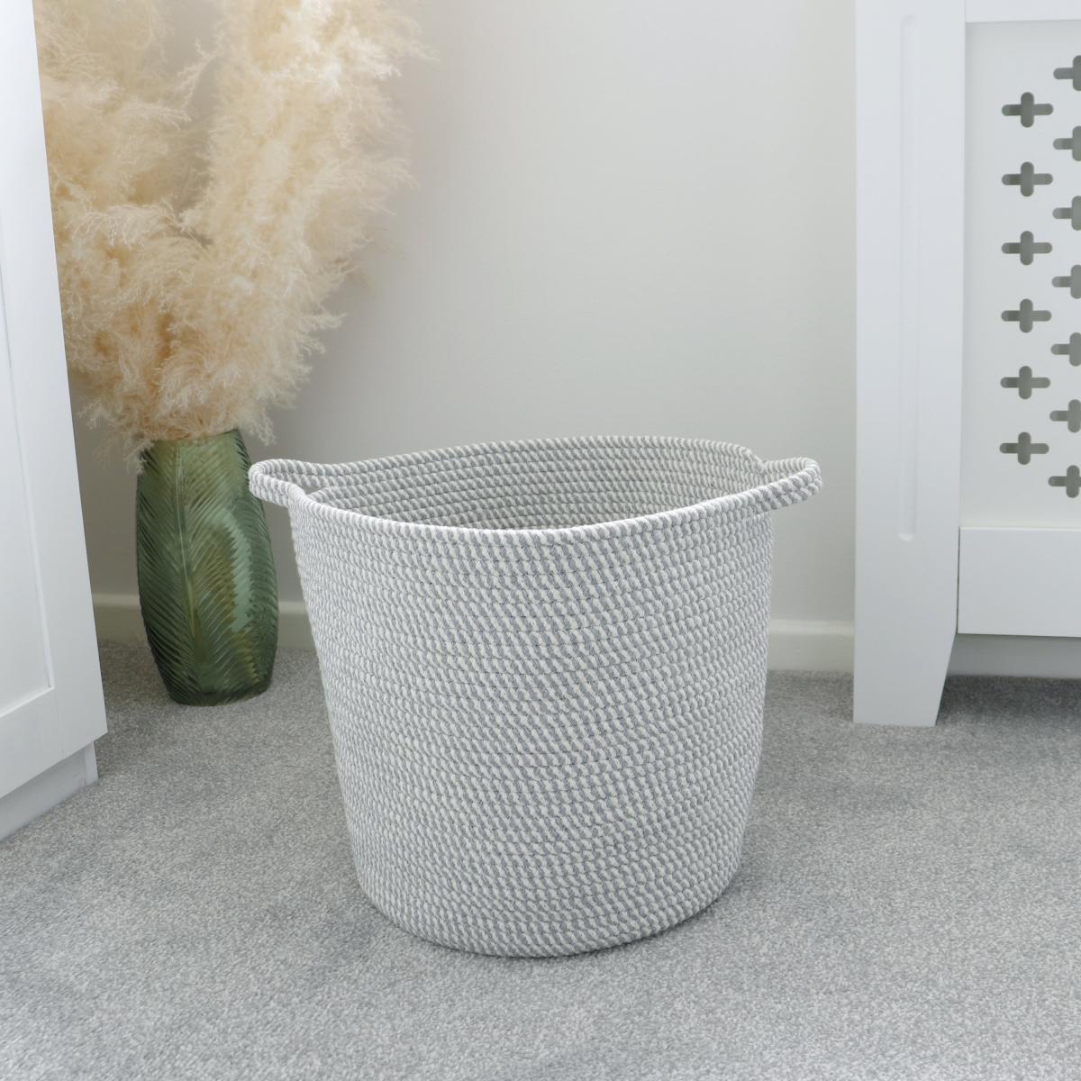 JVL Edison Round Storage Basket White and Grey