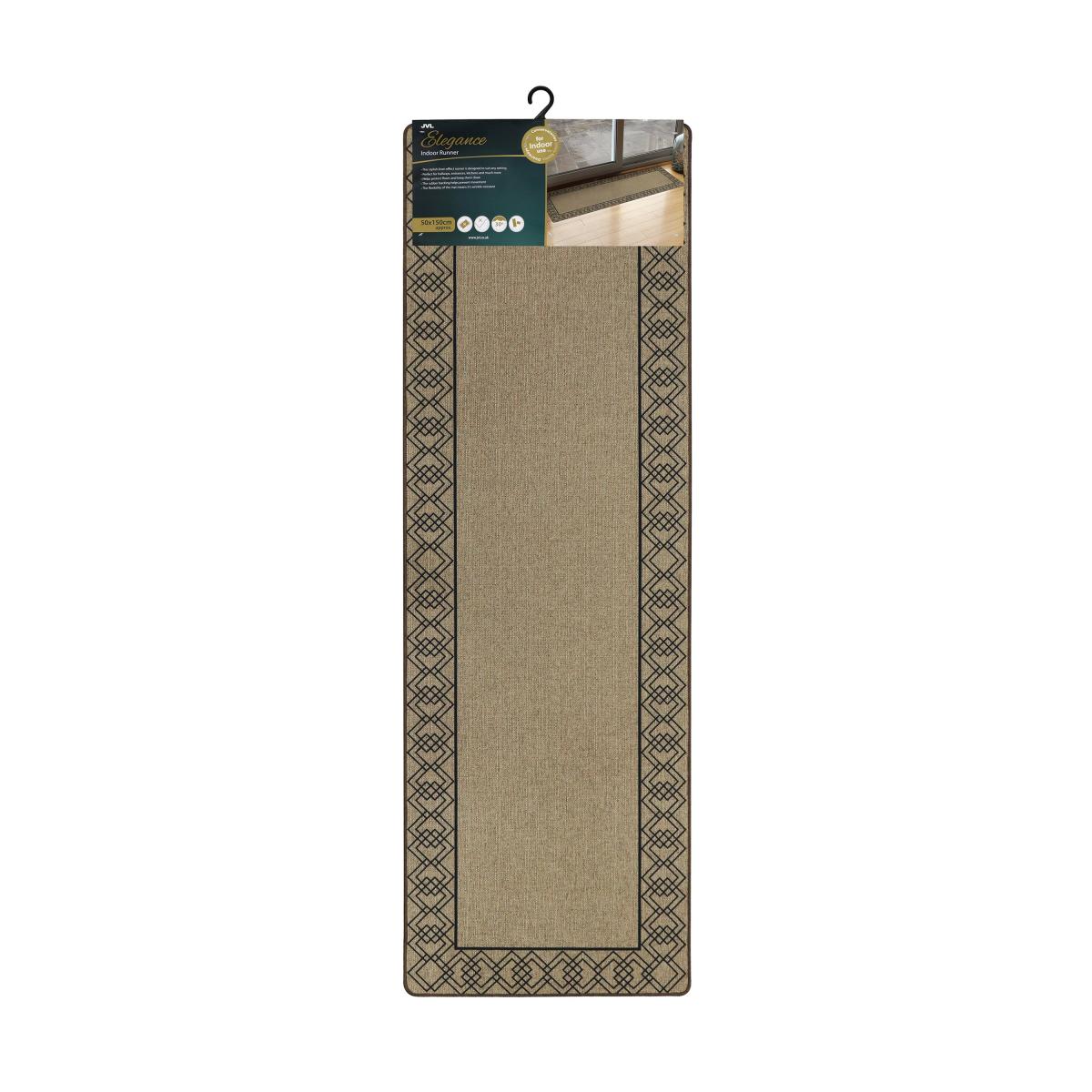 Add a touch of elegance to your home with JVL’s Elegance runner, offering the perfect blend of style and function and ideal for any room in your home. The linen-look design and printed diamond border silhouettes add a touch of class to any space, while the rubber backing provides a comfortable feel underfoot and helps prevent movement on most floor types. The slim design allows the runner to fit easily under most doors, making it a versatile choice for entrances, hallways and kitchens, while the wrinkle-resistant material lays flat with no creases after washing. Easy to maintain, the runner is fully machine washable and a matching doormat is also available for a cohesive look throughout your home.