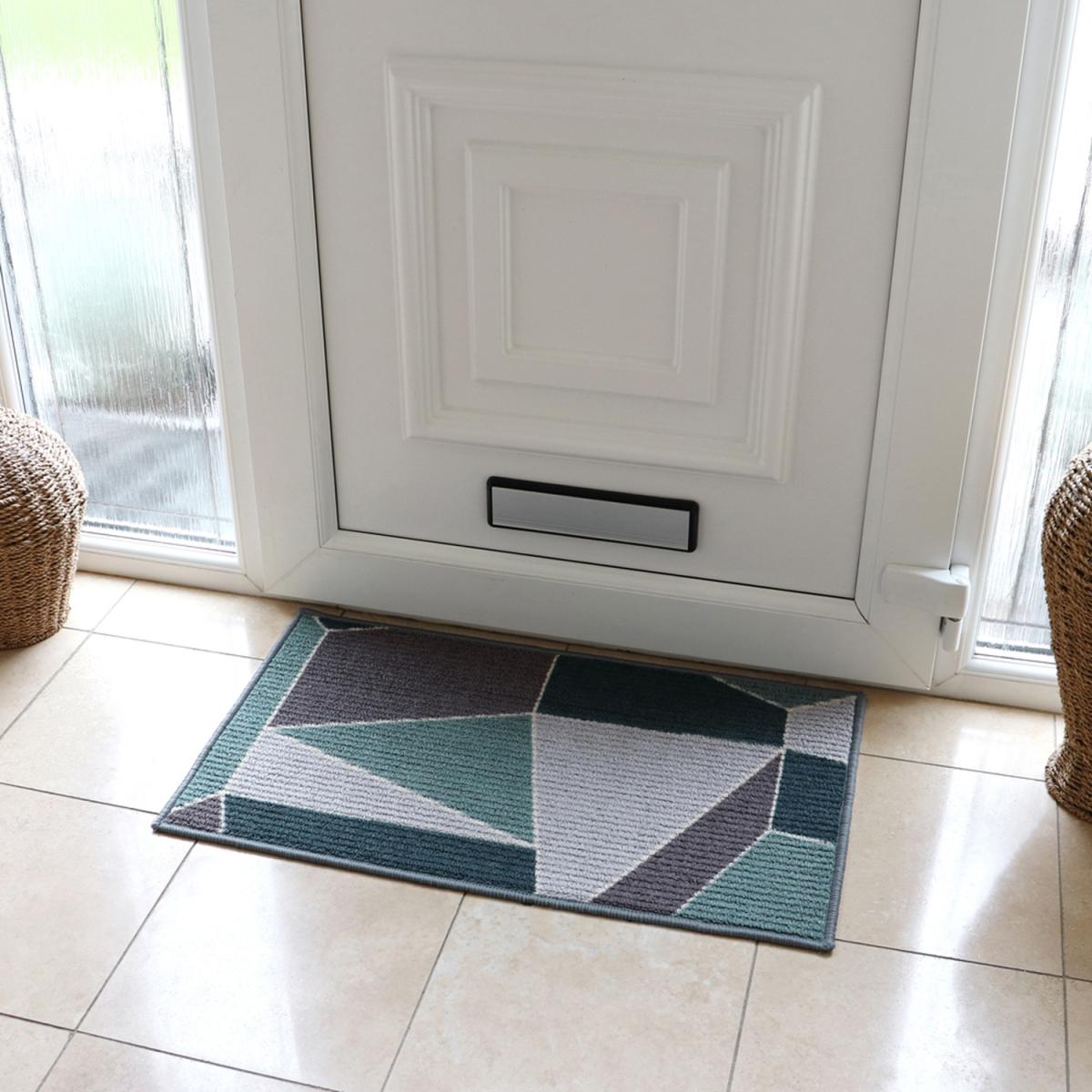JVL Fiora Machine Washable Door Mat, 44 x 75 cm, Duck Egg - Duck Egg