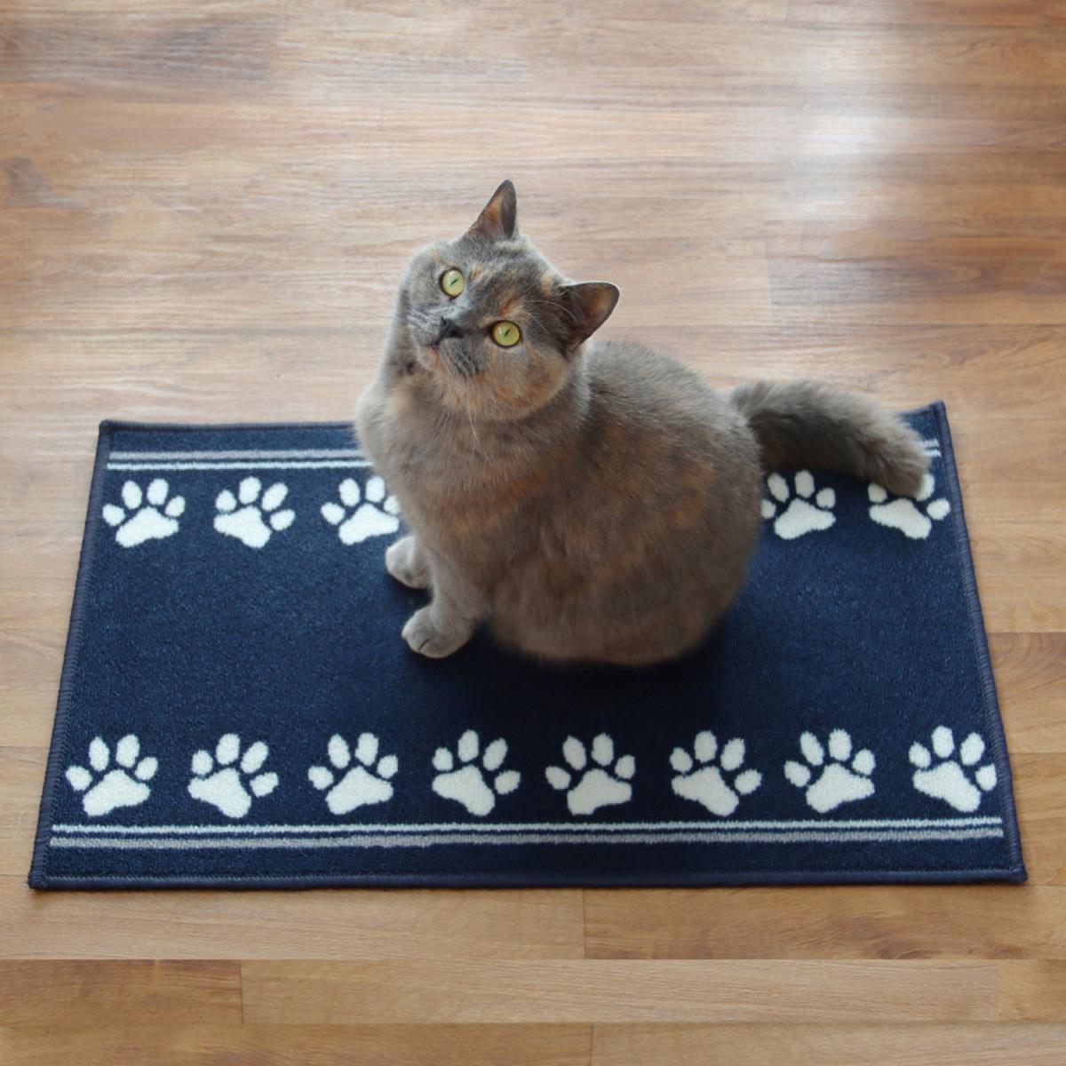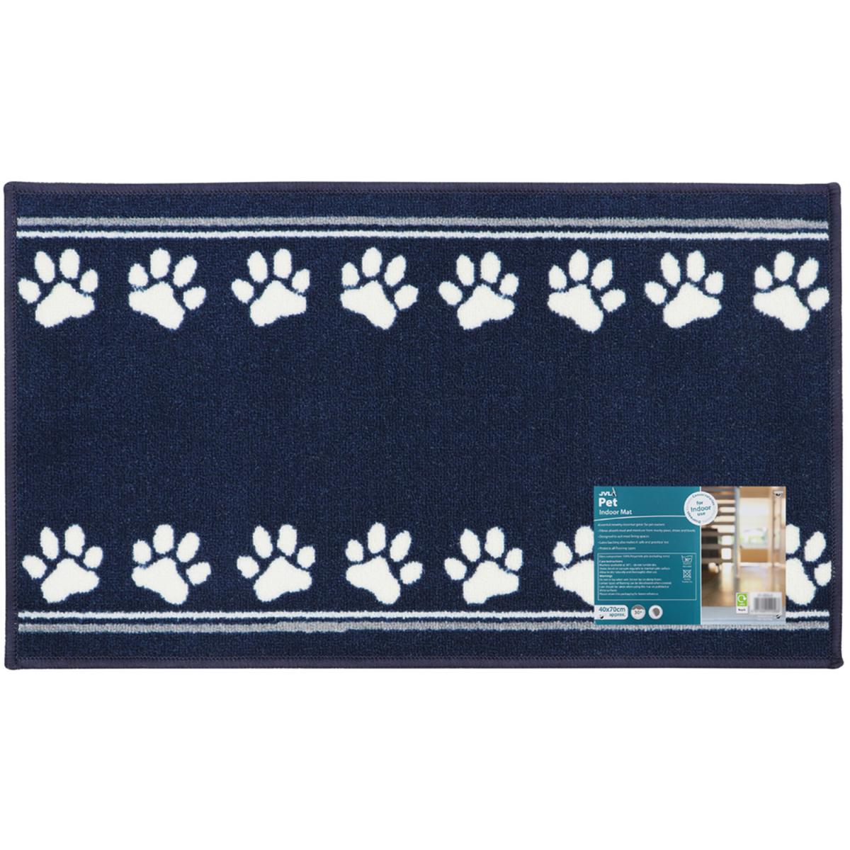JVL Machine Washable Pet Mat 40 x 70 cm, Parade Paws - Navy