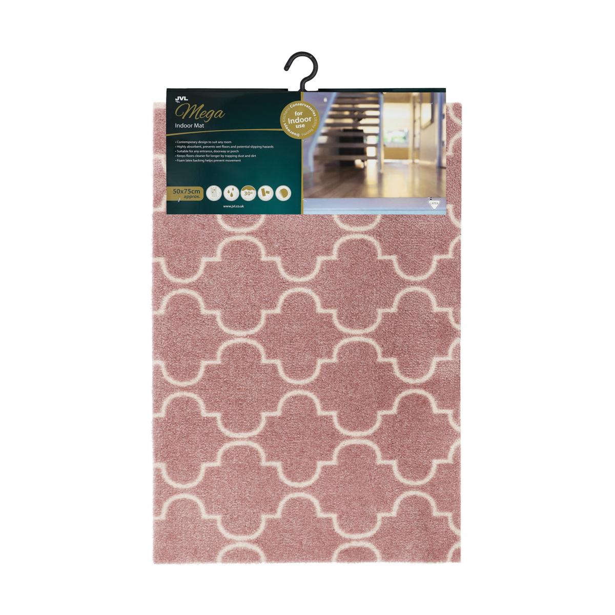 Introducing JVL’s MEGA Doormat - the ultimate solution for keeping your floors cleaner for longer! Perfect for any entrance, doorway or porch, this mat is designed to trap dust and dirt from muddy boots and shoes or paws. The pile absorbs moisture to avoid wet floors at home and protects your carpets and floors, reducing cleaning chores for you. Designed with a contemporary rose lattice pattern, the soft rose tone brings a touch of spring to any space and complements a neutral decor. The mat's high absorbency ensures that it soaks up moisture to prevent wet floors and potential slipping hazards and the foam latex back also helps prevent movement when wiping your feet. Easy to maintain, the doormat is fully machine washable and available in a matching runner size for a coordinated look throughout your home.