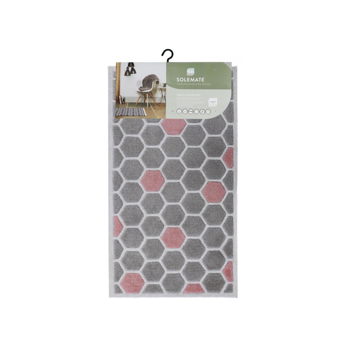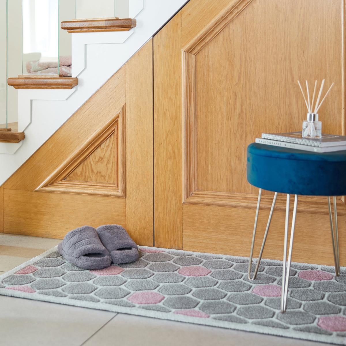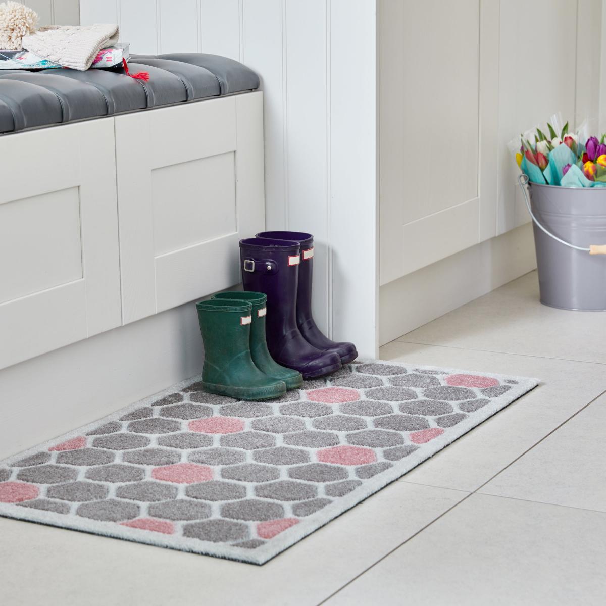 Introduce a touch of luxury and practicality to your home with JVL’s collection of hand-carved doormats made with thick, deep pile that absorbs moisture. With a contemporary pink and grey colour scheme, hexagonal pattern that adds style and hand carved details to add depth and dimension to your entrance or living space, it delivers excellent performance and a long lifespan. Gentle enough to bare feet and paws catching dust and dirt as your feet walk by, the soft fibres are highly absorbent and the pile soaks up moisture so your floors remain clean and protected.