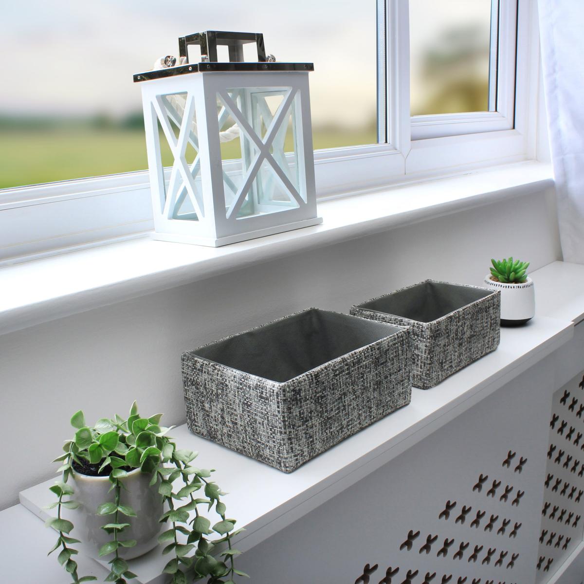 I love these baskets because they offer versatile storage with a contemporary feel thanks to the grey fabric finish. They work particularly well in neutrally decorated interiors, such as minimal, Scandi, or modern industrial spaces, where their understated style won't overpower other design elements. Practical styling tips include using them to organise toiletries in the bathroom, small accessories on a dressing table, or even as a stylish way to conceal clutter in living areas. Pairing them with neutral tones and natural textures helps create a cohesive look, while stacking or grouping them adds visual interest. These baskets are not only functional but also add a touch of organised sophistication to any room.