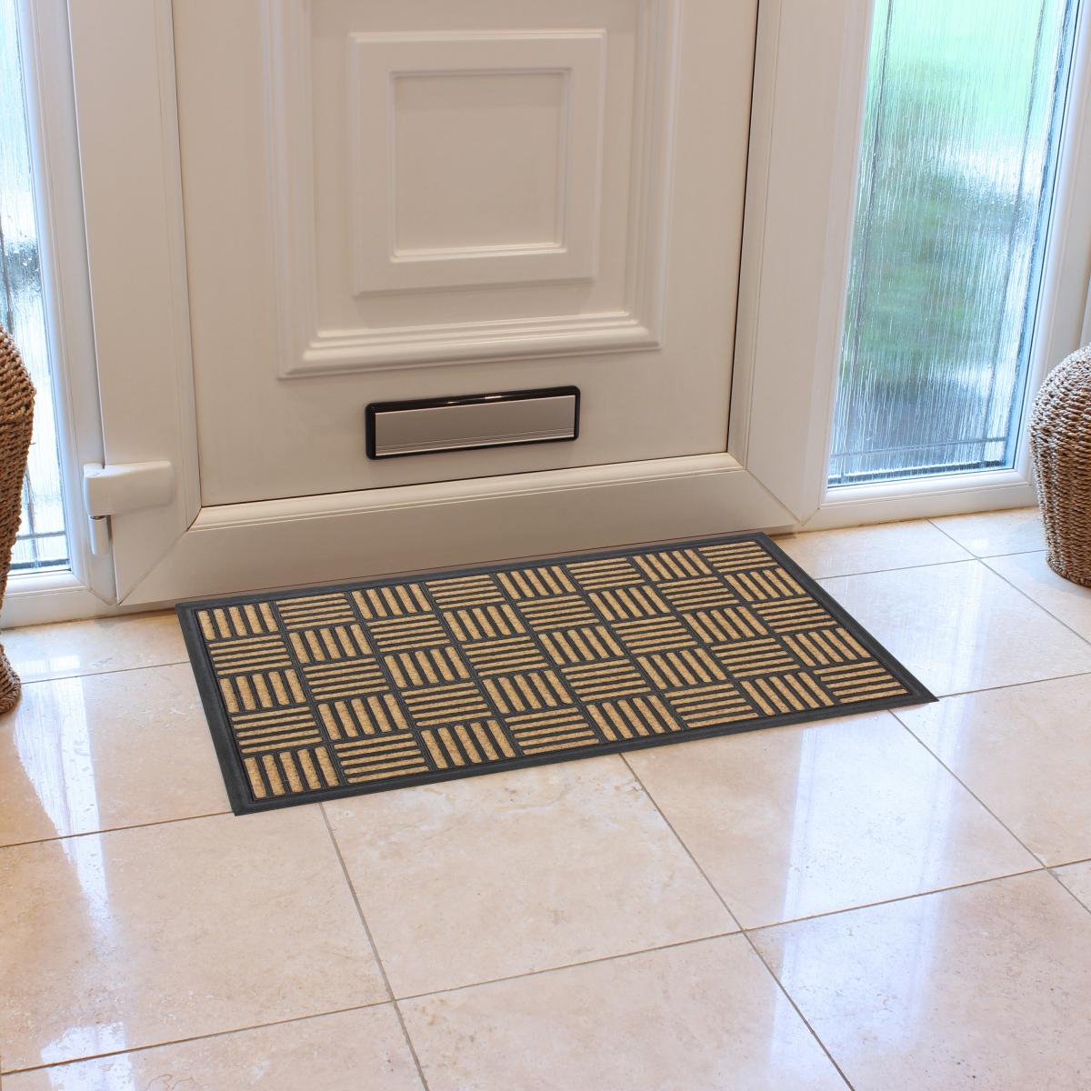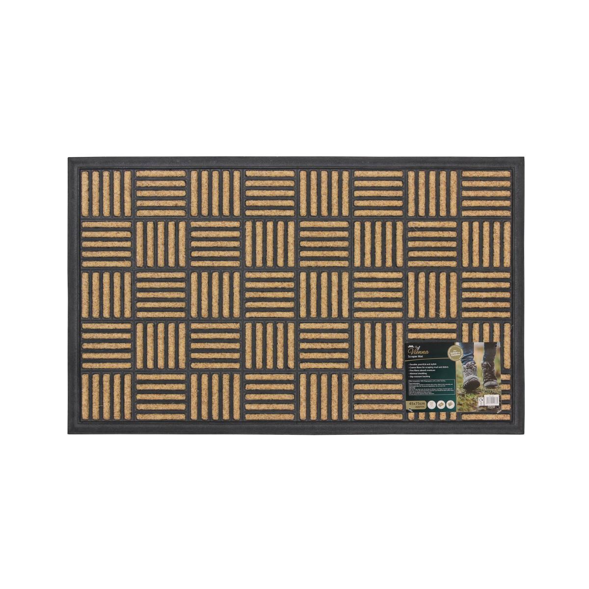 Introducing the JVL Vienna doormat - a striking linear design that gives the effect of real coir and will complement any entrance in or around your home. The raised surfaces not only creates an eye-catching style with the square lines pattern, but the combination of materials make it easy to wipe shoes clean, and fibres hold moisture and trap dust and dirt, keeping floors cleaner for longer. The doormat is framed in rubber for added durability and robustness and the rubber textured underside also helps to keep the mat in place.