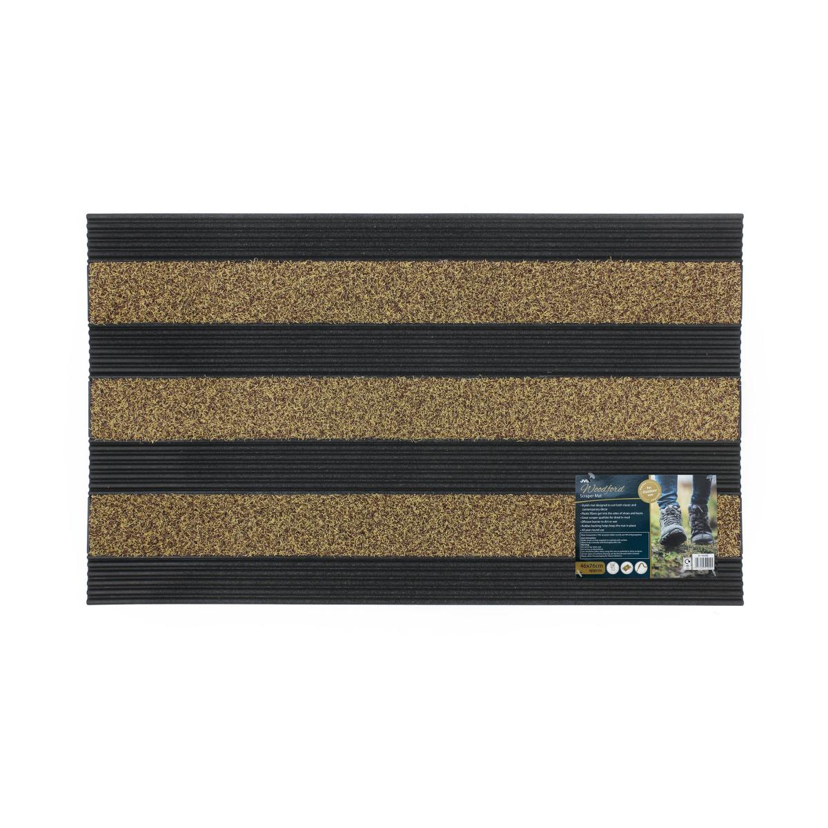 Upgrade your home with the JVL Woodford Scraper doormat today and enjoy a cleaner and more stylish home. Designed to offer the practicality you need while also being beautifully designed. The unique ribbed surface allows shoes to be easily cleaned and the polypropylene bristles work to get deep into the grooves of shoes and boots, removing dried-in mud and dirt, leaving your floor inside the home clean and dirt-free. Perfect for use all year round, and in all weather conditions, this mat is designed to withstand the elements, making it perfect for outdoor use and the rubber backing helps keep the mat in place. When it gets dirty, it's easy to clean with a simple shake or hose down.
