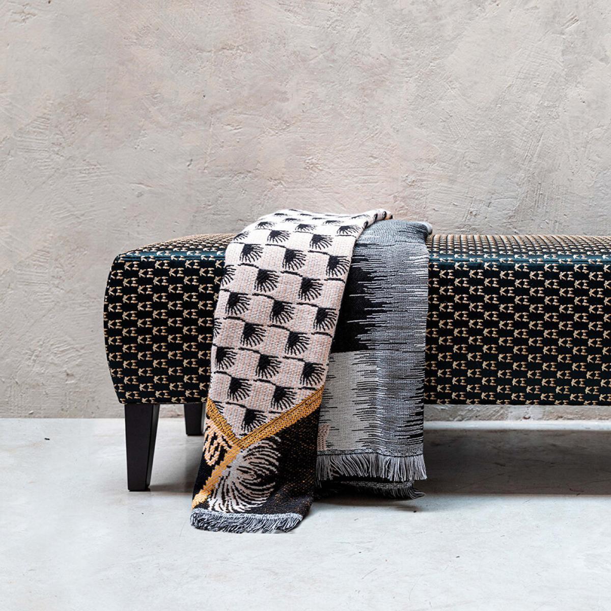 I love this K3 throw because of its striking patchwork design and rich texture, which adds visual interest and a sense of luxury to any space. It works particularly well in contemporary or eclectic interiors, where its bold black and white palette can serve as a statement piece, or layered over neutral furnishings for contrast. Practical styling tips include draping it casually over a sofa or armchair, or folding it neatly at the foot of a bed to enhance a layered bedding look. Its jacquard weave offers durability, making it a versatile accessory that combines style with practicality.