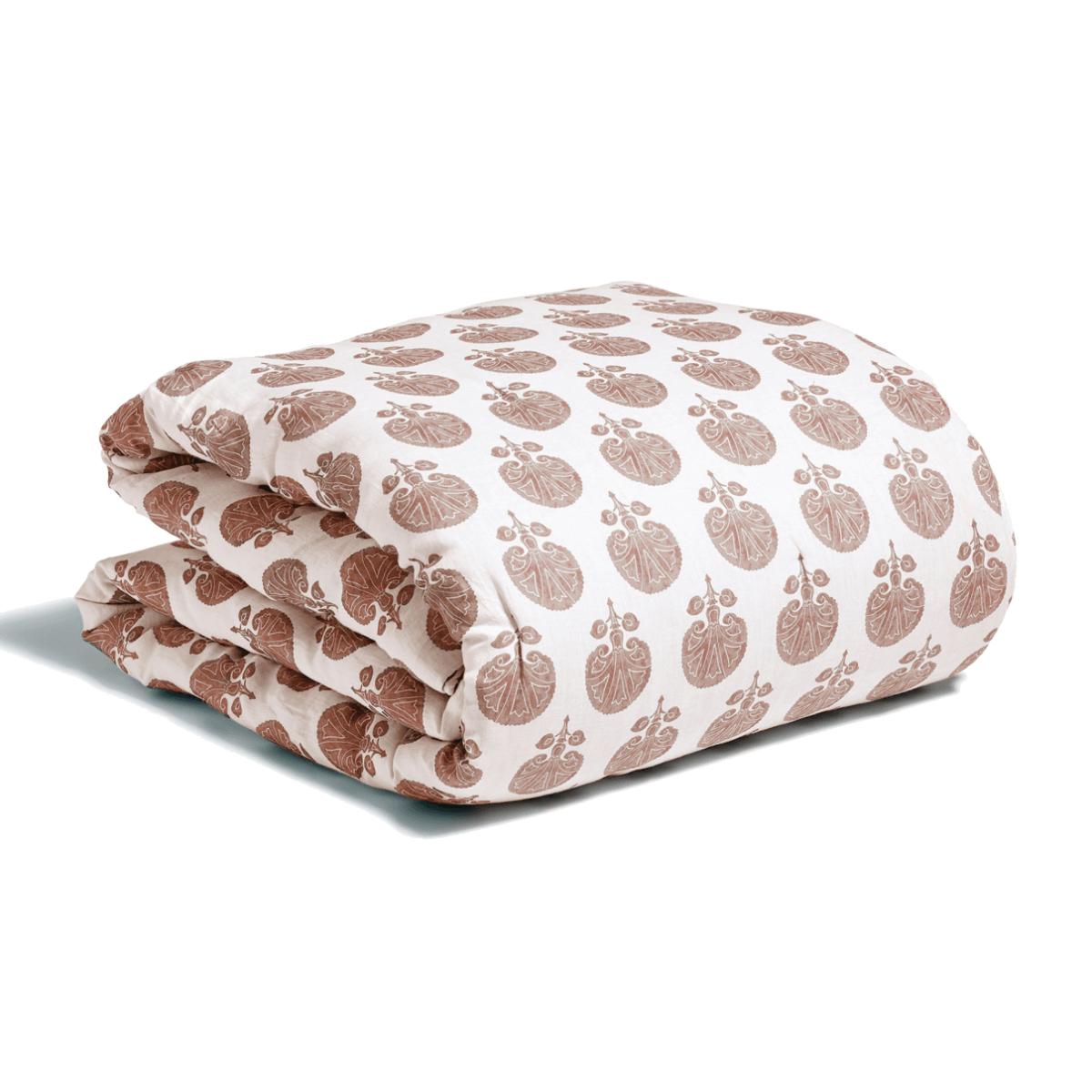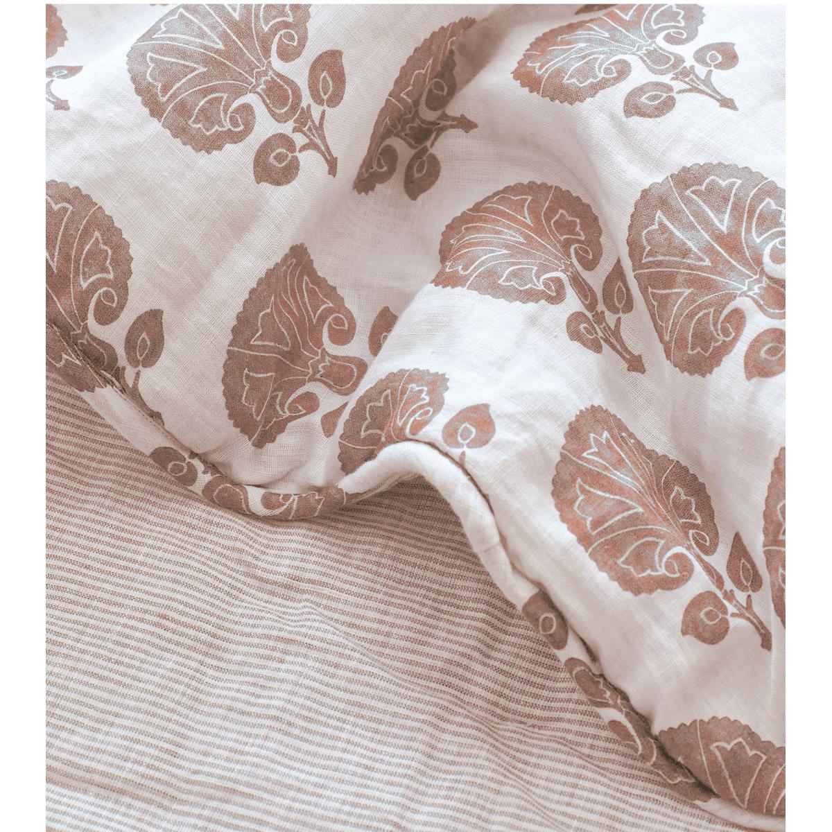 Pretty in pink, our natural linen Kabibi Quilt features a digitally printed shell design that perfectly matches our hand-embroidered cushions of the same name. The underside of the quilt features a very fine stripe in the same colour, with piping running along the edges, all packaged in a matching Kabibi print bag.