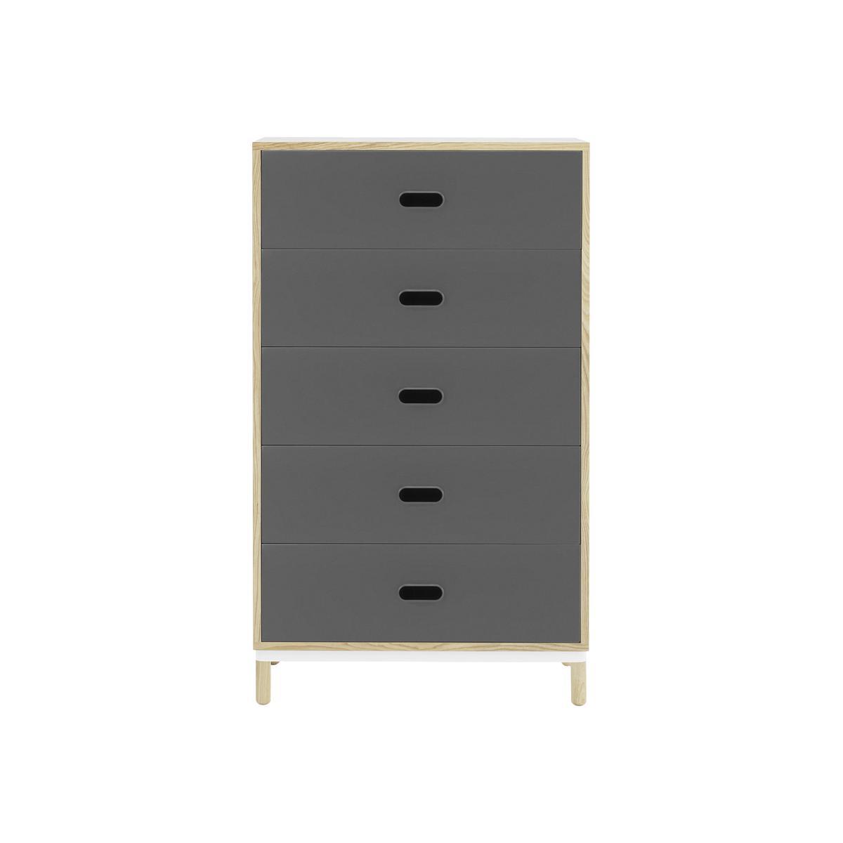 Kabino Chest of drawers - L 74 x H 127 cm / 5 drawers by Normann Copenhagen Grey/Natural wood