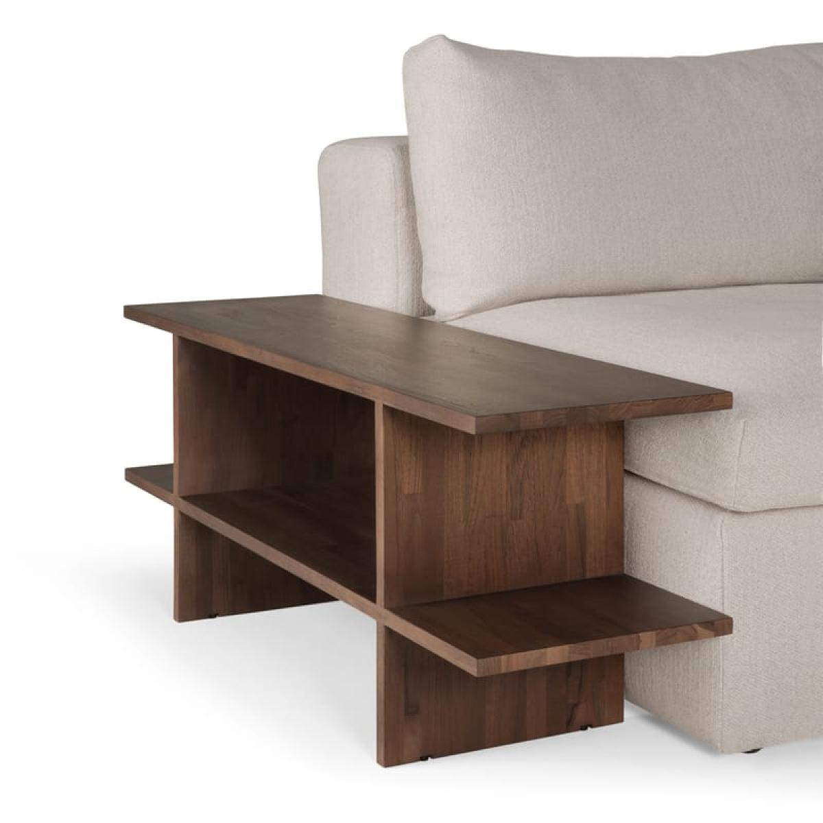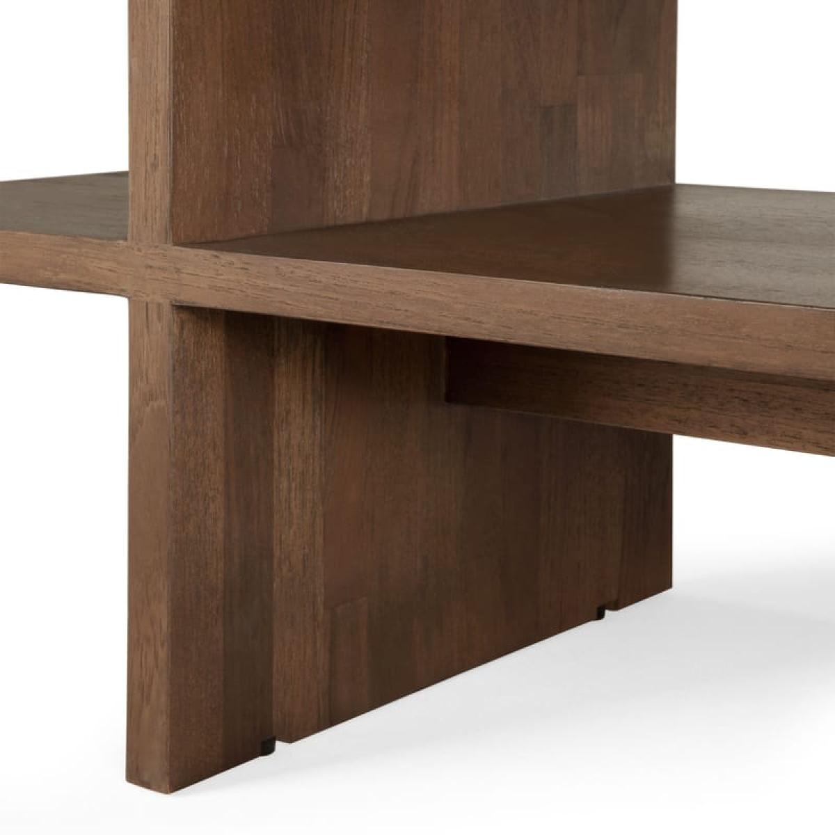 A zen and contemporary spirit for this Coffee table / Console in FSC-certified solid teak, stained Brown with varnish finish. This dark wood with its noble connotations will warm up your interior with its dark nuances. Ethnicraft's Kabuki end table is inspired by traditional Japanese furniture and low living. Sculptural and minimalist, this piece features a geometric assembly of thick boards that draw symmetrical, pure and rigorous lines. The Kabuki End table combines references to Asian tradition and culture with modern functionality and comfort to create an inspiring piece full of character. For twenty-five years, the Belgian brand Ethnicraft has honored the beauty and authenticity of Solid wood. Timeless, extremely solid and durable, this is quality furniture that ages beautifully and is handed down from generation to generation. Handcrafted, Ethnicraft furniture is the fruit of exceptional know-how. Behind the apparent simplicity of the design lies a constant quest for innovation. Integrating advanced techniques into the creative process, each new design is crafted down to the smallest detail. Care and maintenance. Varnished wood products are coated with a protective layer. This finish gives the product its Natural color and provides effective protection against stains. Despite this treatment, it is advisable to clean up any liquid splashes immediately. In detail: Variation : Burnish Teak Brand : Ethnicraft Designer : Reynaldo Zapp Type : Coffee table, Low console Colour : Teck brun Material : FSC-certified solid teak, stained Brown with varnish finish Dimensions : L 103 x W 30 x H 40 cm Weight : 22.462 lb Characteristics : Side table / Low console - Handcrafted - Certified Wood - Strong and durable - Delivered assembled - Max. supported weight: 60 kg Show less