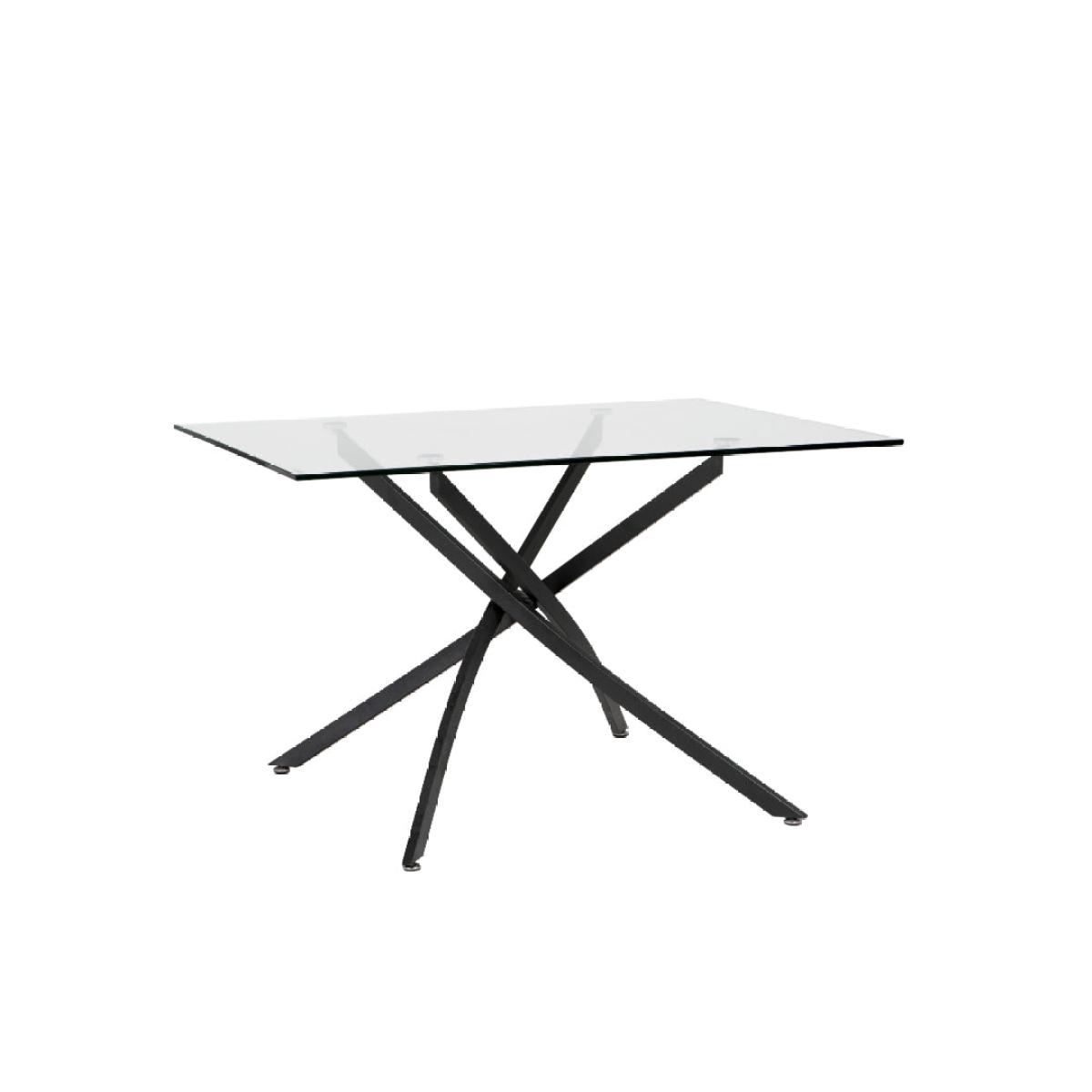 Kacey Round Dining table, contemporary design with metal leg and tempered glass top. Sold with Soren Dining Chairs. The Soren dining chair is versatile, modern chair.  It features metal legs and a plush velvet cushion, available in grey. Kacey Round Dining table, contemporary design with metal leg and tempered glass top. Sold with Soren Dining Chairs. The Soren dining chair is versatile, modern chair.  It features metal legs and a plush velvet cushion, available in grey.